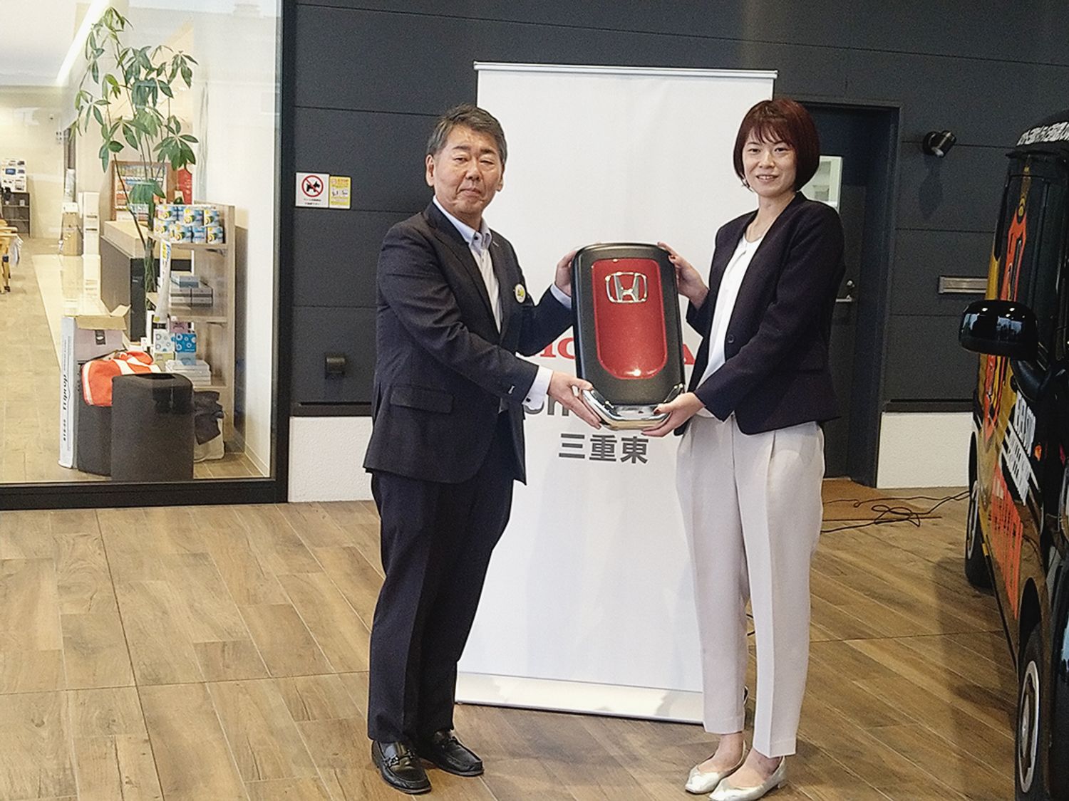 【津】ホンダカーズ三重東(丸本博社長)は、県内を拠点に活動する「ヴィアティン三重バレーボールチーム」に「N―VAN」を寄贈した。車両にチーム名や同社名をラッピングした。「車両寄贈式」を桑名市の同社桑名江場店で開催し、丸本社長がヴィアティン...