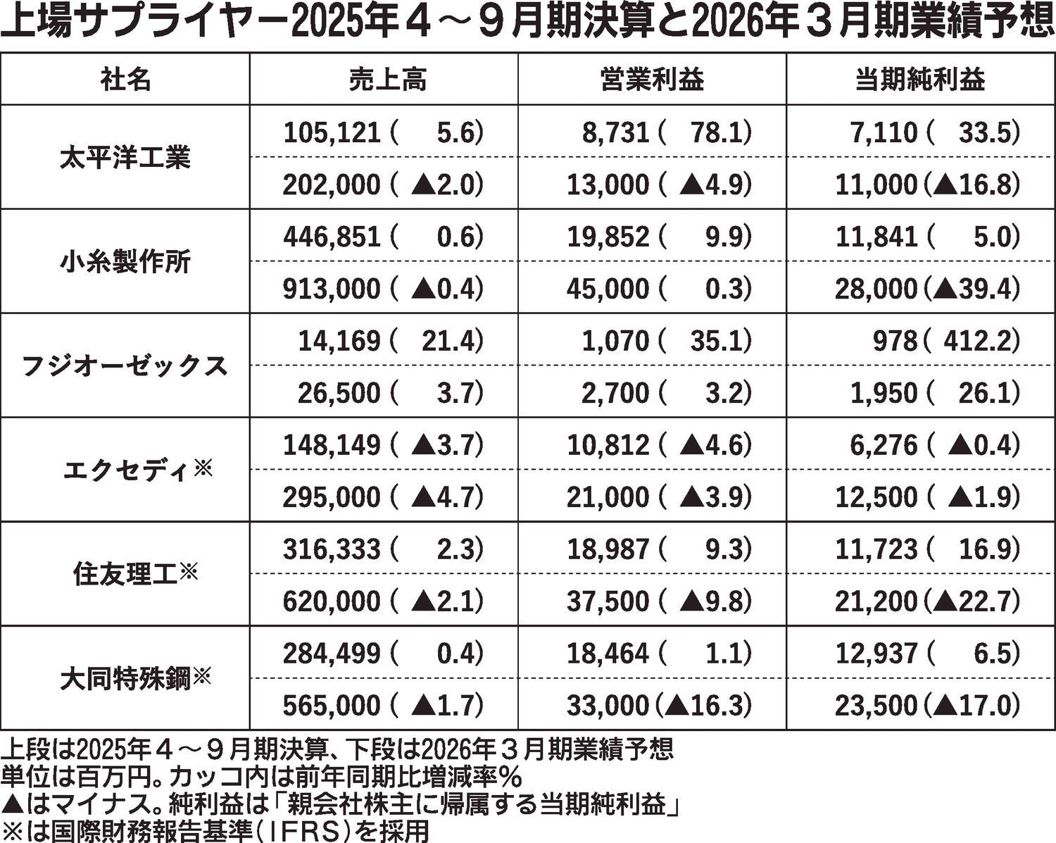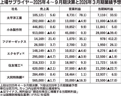 〈上場サプライヤー2025年4~9月期決算と2026年3月期業績予想〉(11/11付)