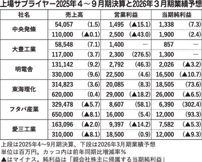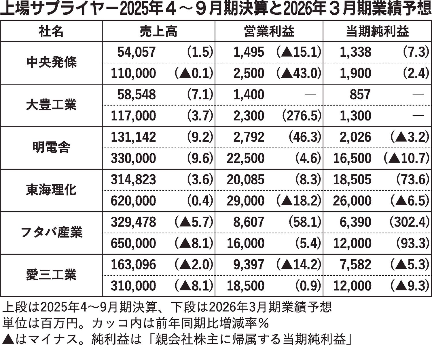 〈上場サプライヤー2025年4~9月期決算と2026年3月期業績予想〉(11/12付)