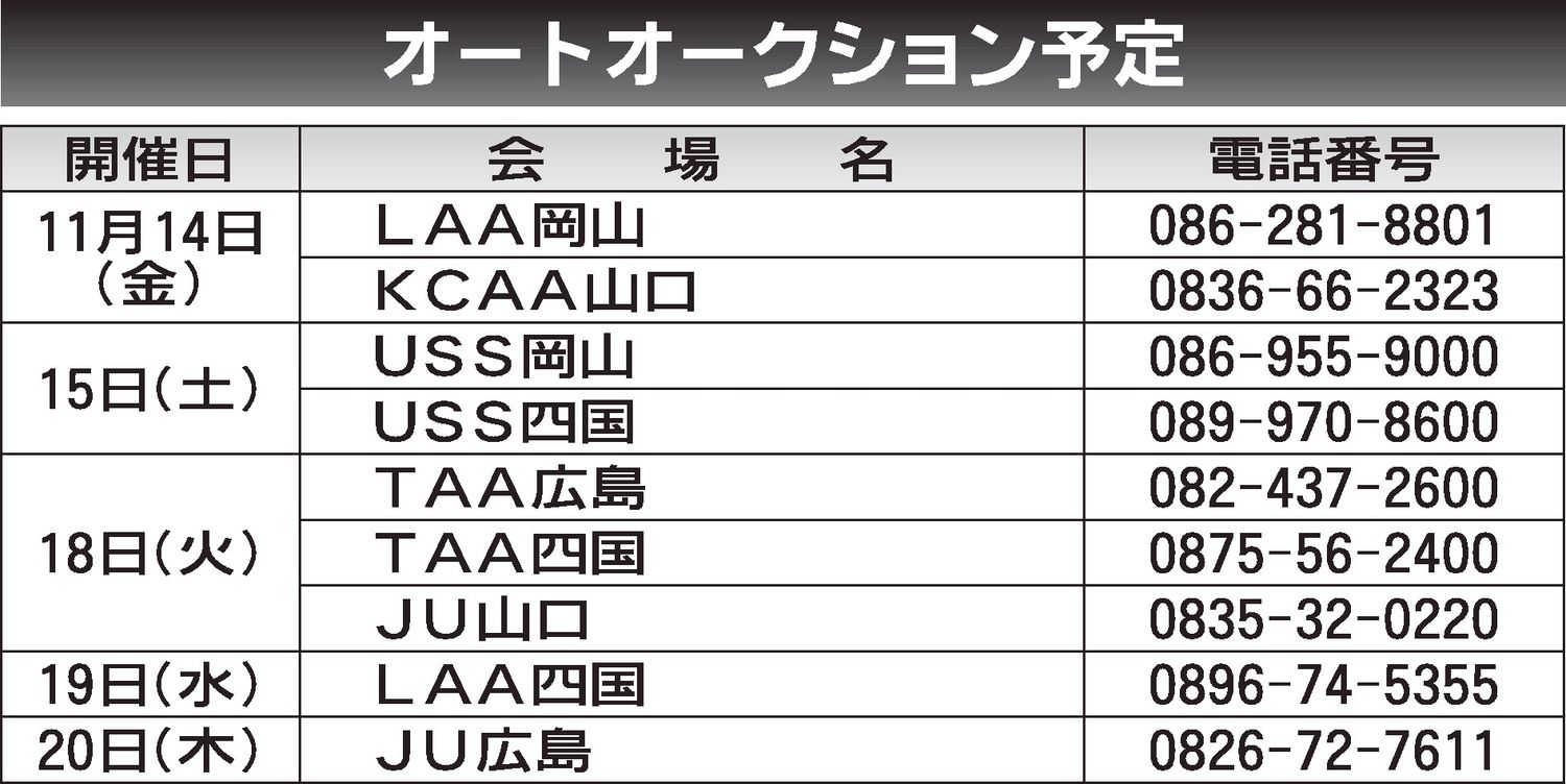 〈オートオークション結果〉中・四国地区 2025/11/5~11