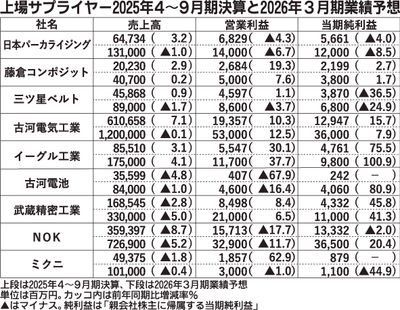 〈上場サプライヤー2025年4~9月期決算と2026年3月期業績予想〉(11/20付)