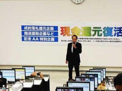 【水戸】JU茨城(小田切賢一理事長)は、「JU全国リレー&JU茨城事務局担当記念オークション(AA)」を小美玉市内の常設会場で開催した。出品台数は目標を上回る805台を集荷し、成約率は63.5%という盛況なAAとなった。 AA開始前のセレ...