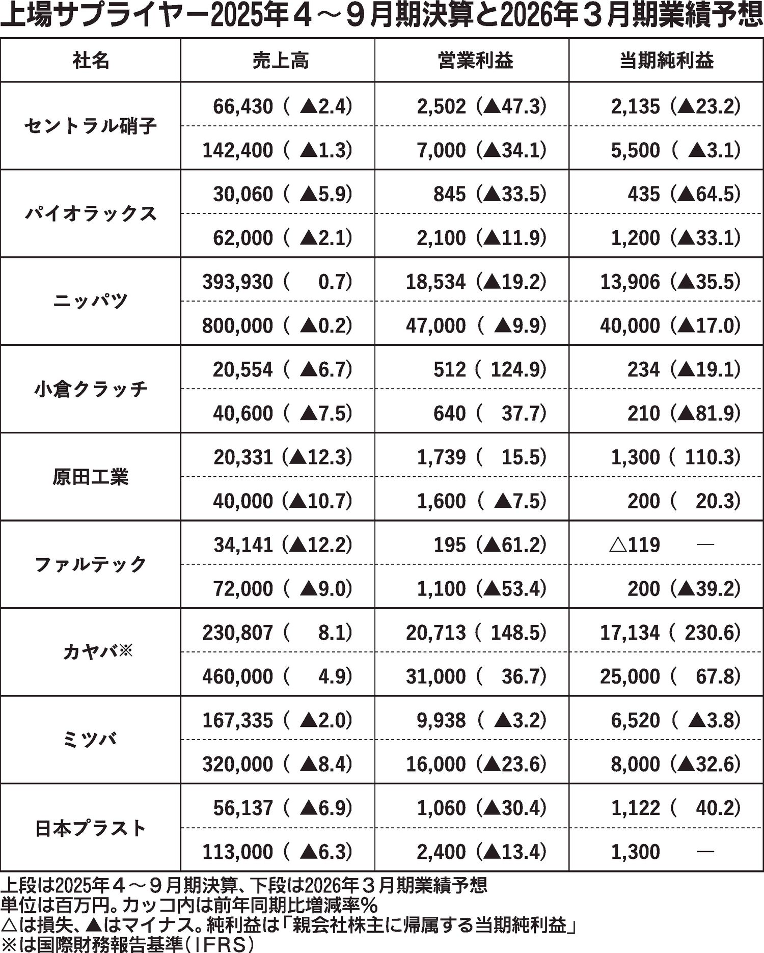 〈上場サプライヤー2025年4~9月期決算と2026年3月期業績予想〉(11/25付)