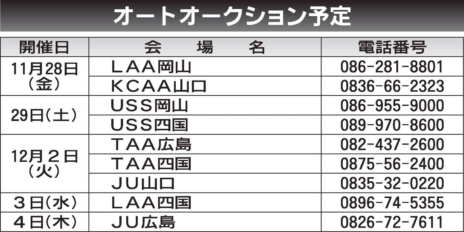 〈オートオークション結果〉中・四国地区 2025/11/19~25