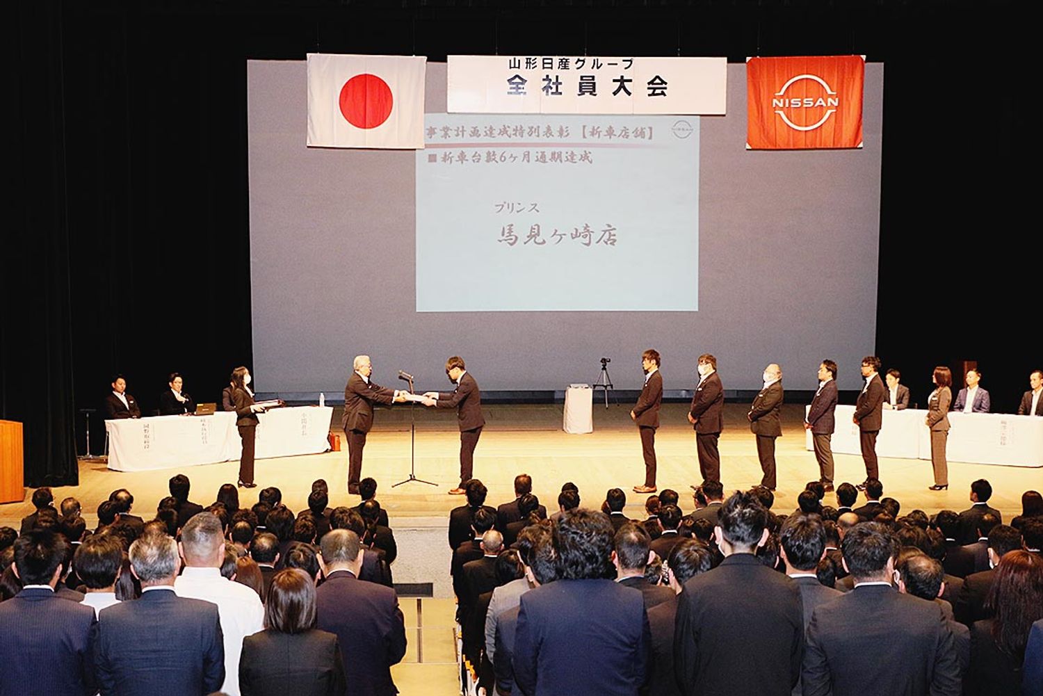 【山形】山形日産(小関眞一社長)を中核に事業を展開する山形日産グループは、天童市で「2025年度下期全社員大会」を開催した。グループ会社の社員400人が出席し、25年度上期に優秀な成績を収めた社員と店舗を表彰した。 あいさつで小関社長は「...