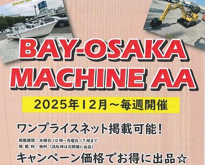 中古車オークション(AA)のベイオーク(小林学社長)は12月から、建設機械や農業機械などを取り扱うコーナー「BAY―OSAKA MACHINE AUCTION(マシンオークション)」について、これまでの月2回から毎週の開催に変更する。同時...