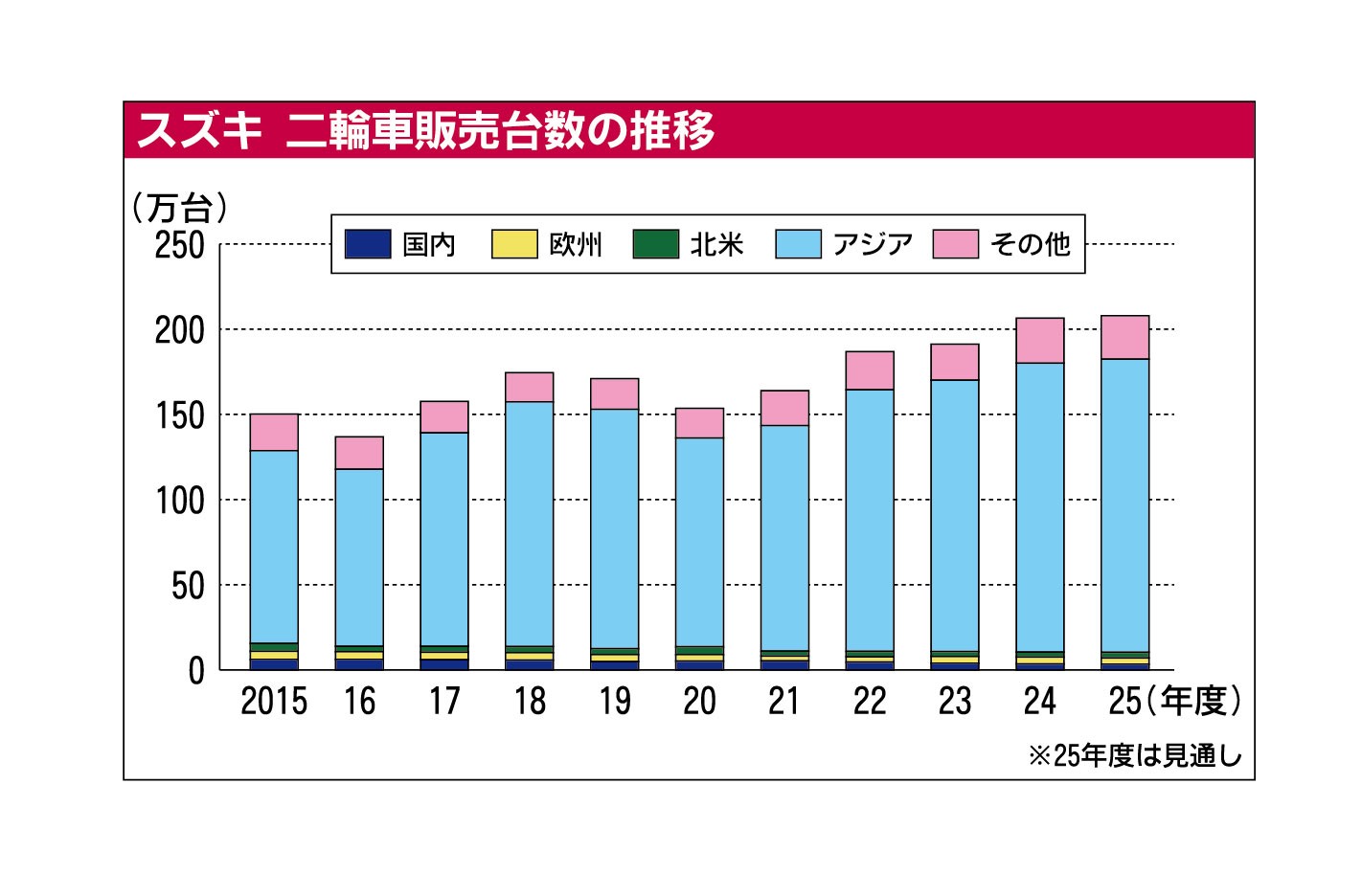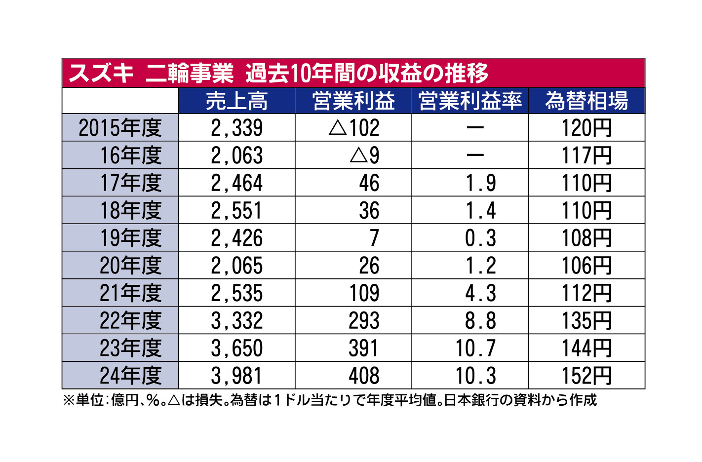 四輪車と二輪車を製造しているメーカーは世界に3社しかない。独BMWとホンダ、スズキだ。そのスズキの二輪事業はリーマンショック前は安定した収益を稼いでいたが、以降は赤字が慢性化。しかし、粘り強い改善の結果、インドや中南米で販売が伸び、円安も...