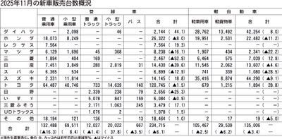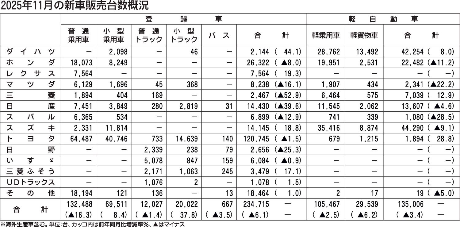〈2025年11月の新車販売台数概況〉