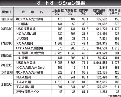 〈オートオークション結果〉九州地区 2025/11/24~12/2