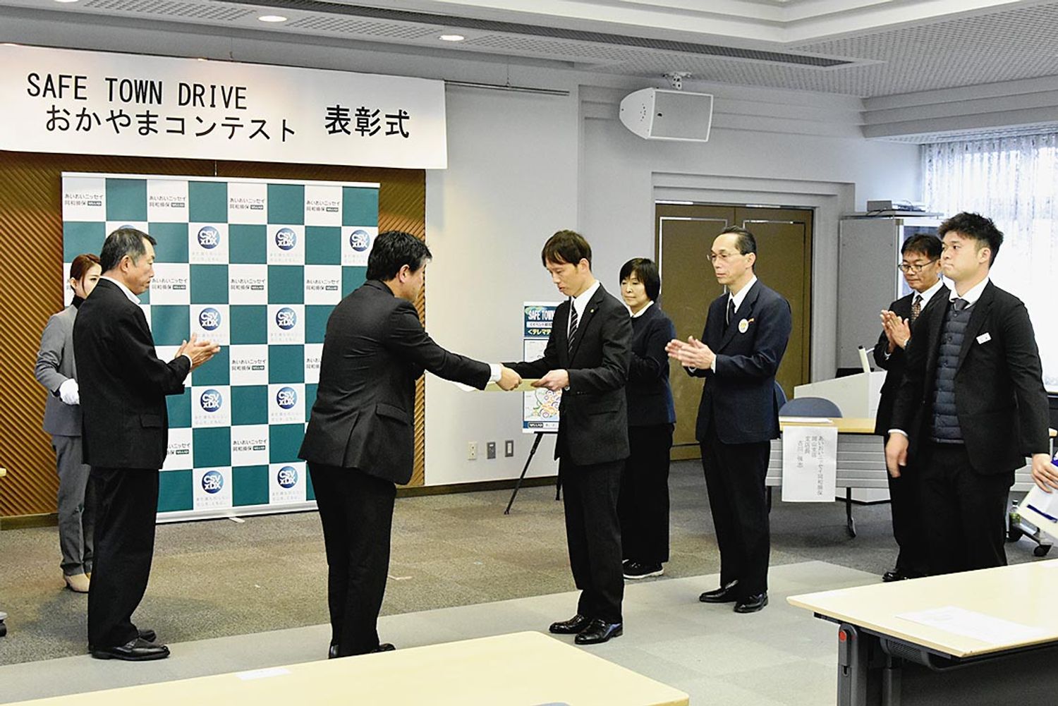 【岡山】あいおいニッセイ同和損害保険岡山支店(古川強志支店長)は、約1千台が参加して10月の1カ月間実施した「セーフタウンドライブおかやまコンテスト」の上位5チームに対する表彰式を催した。 表彰式は11月25日に岡山県運転免許センター(岡...
