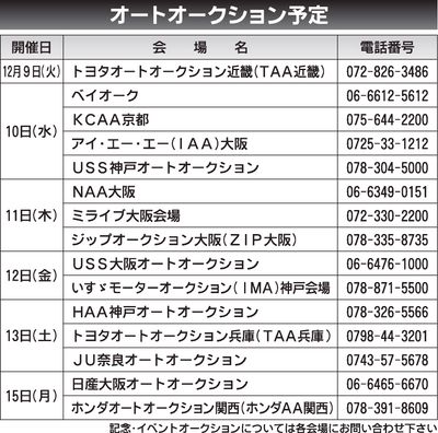 〈オートオークション予定〉近畿地区 2025/12/9~15