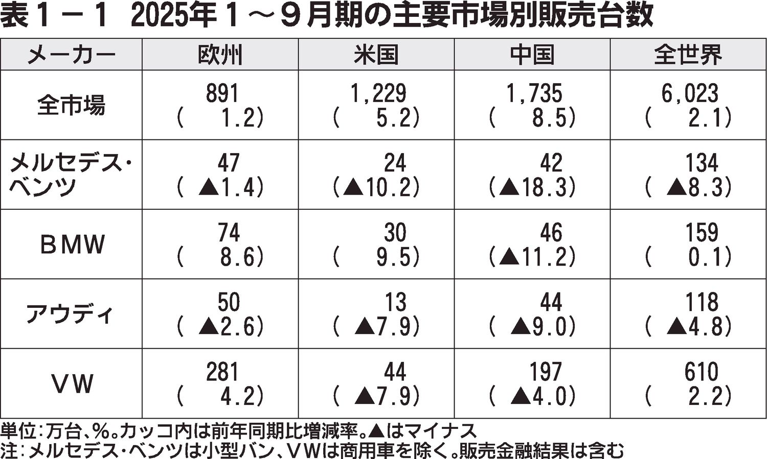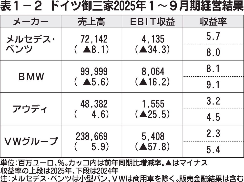 ドイツ乗用車メーカーの2025年第1~第3四半期累計(1~9月)決算は、世界最大市場の中国で100社以上もある電気自動車(EV)メーカーの乱売による値引き・低価格戦略および米中貿易戦争、トランプ関税の影響をもろに受け、大きく減益となった。...