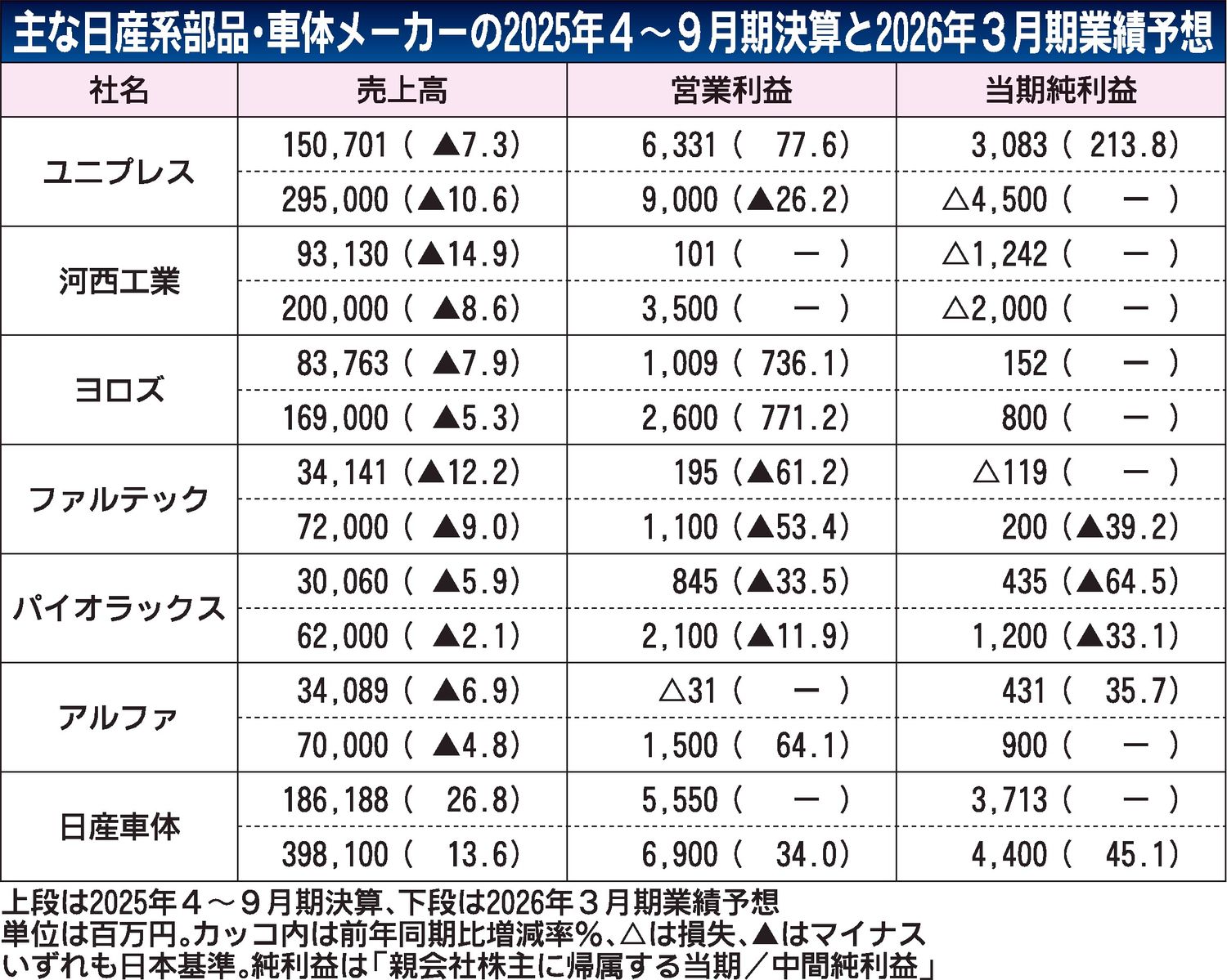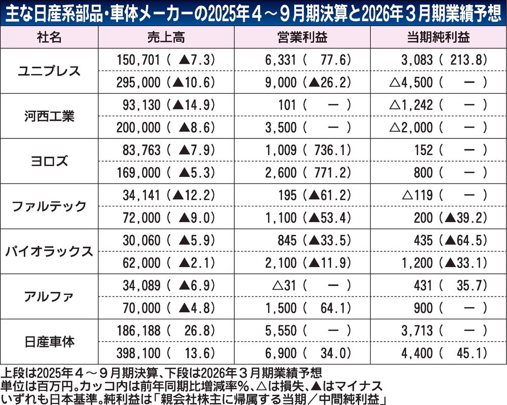 日産自動車系サプライヤーの間に、中国事業の不振脱却への期待感が高まりつつある。日産は経営再建計画「リ・ニッサン」が徐々に具体化し、足かせだった中国でも新型車効果が表れつつある。2025年4~9月期決算は系列サプライヤーの大半が減収となるな...