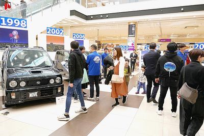 ダイハツ工業は、イオンモール福岡(福岡県粕尾町)で2日間、ムーヴ誕生30周年を記念した企画展「ムーヴオンギャラリー」を開催した。歴代ムーヴとともに、イラストレーターの永井博氏が歴代ムーヴの発売当時に描いた作品や人気アイテムなどを展示し、各...