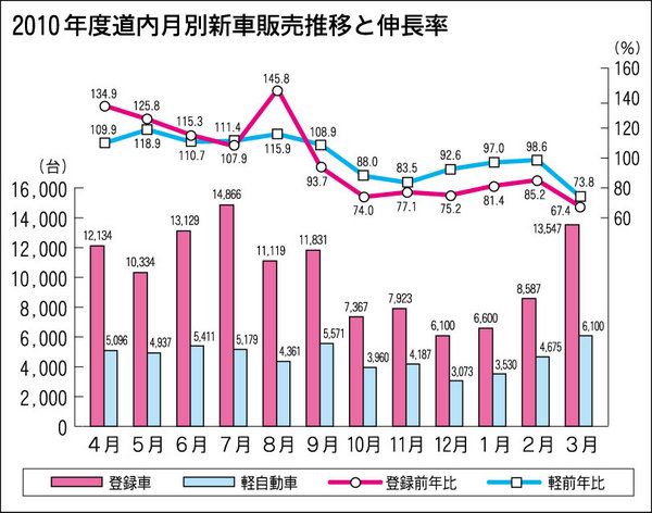 3月度道内新車販売台数、震災が最需要期を直撃し過去10年で最大の減少幅