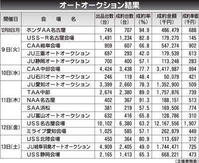 〈オートオークション結果〉中部地区 2025/12/8~13