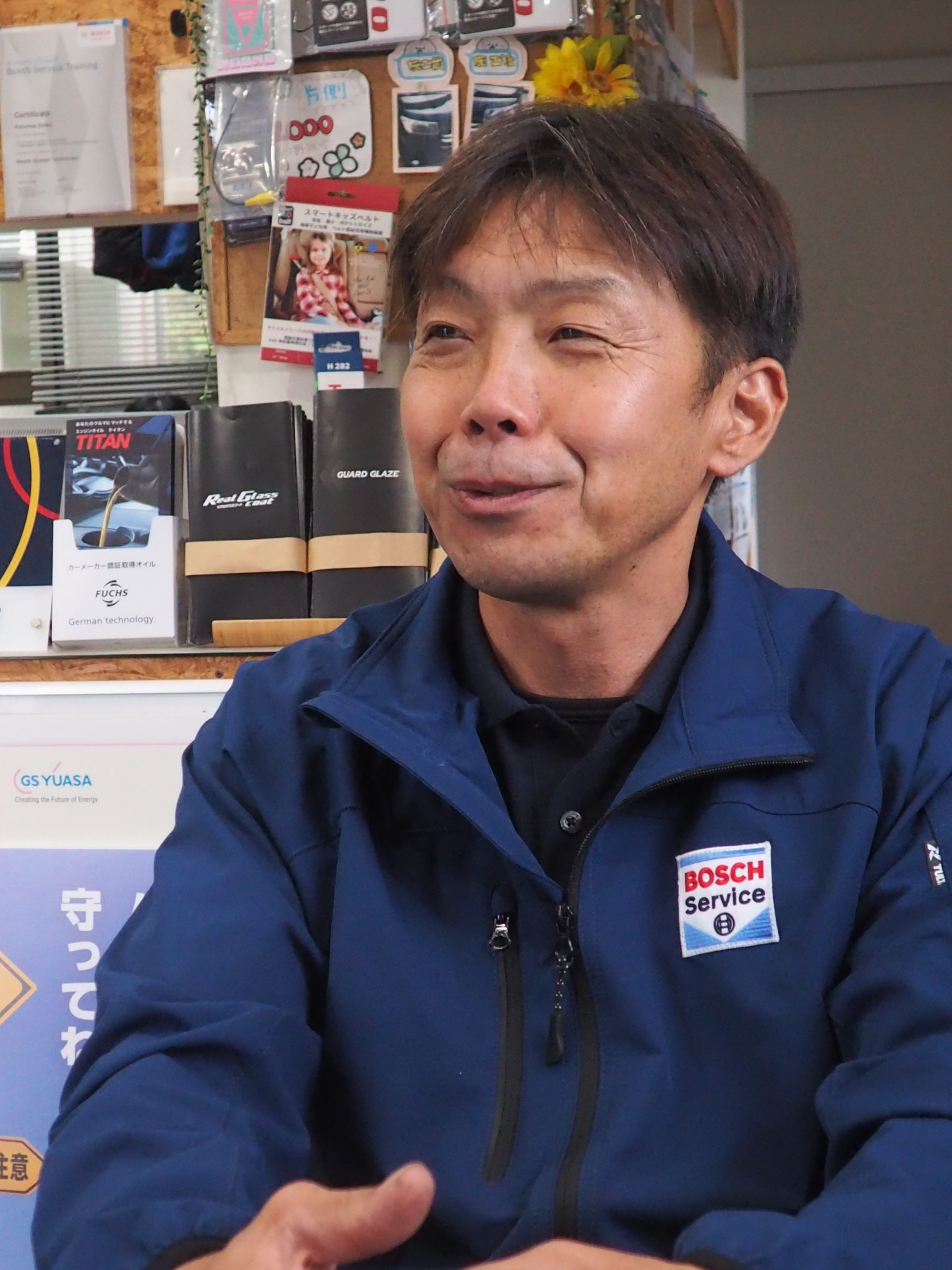現在は善家社長や社員が講習会などで出掛けても、残った人に仕事を任せられるなど、企業としての体制が整ってきた。ボッシュは店舗の監査を定期的に実施し、加盟店の顧客満足(CS)やサービス品質の向上をサポートする。同社も、加入後は整備工場や待合スペースなどを清潔に保つ意識が高まったという。