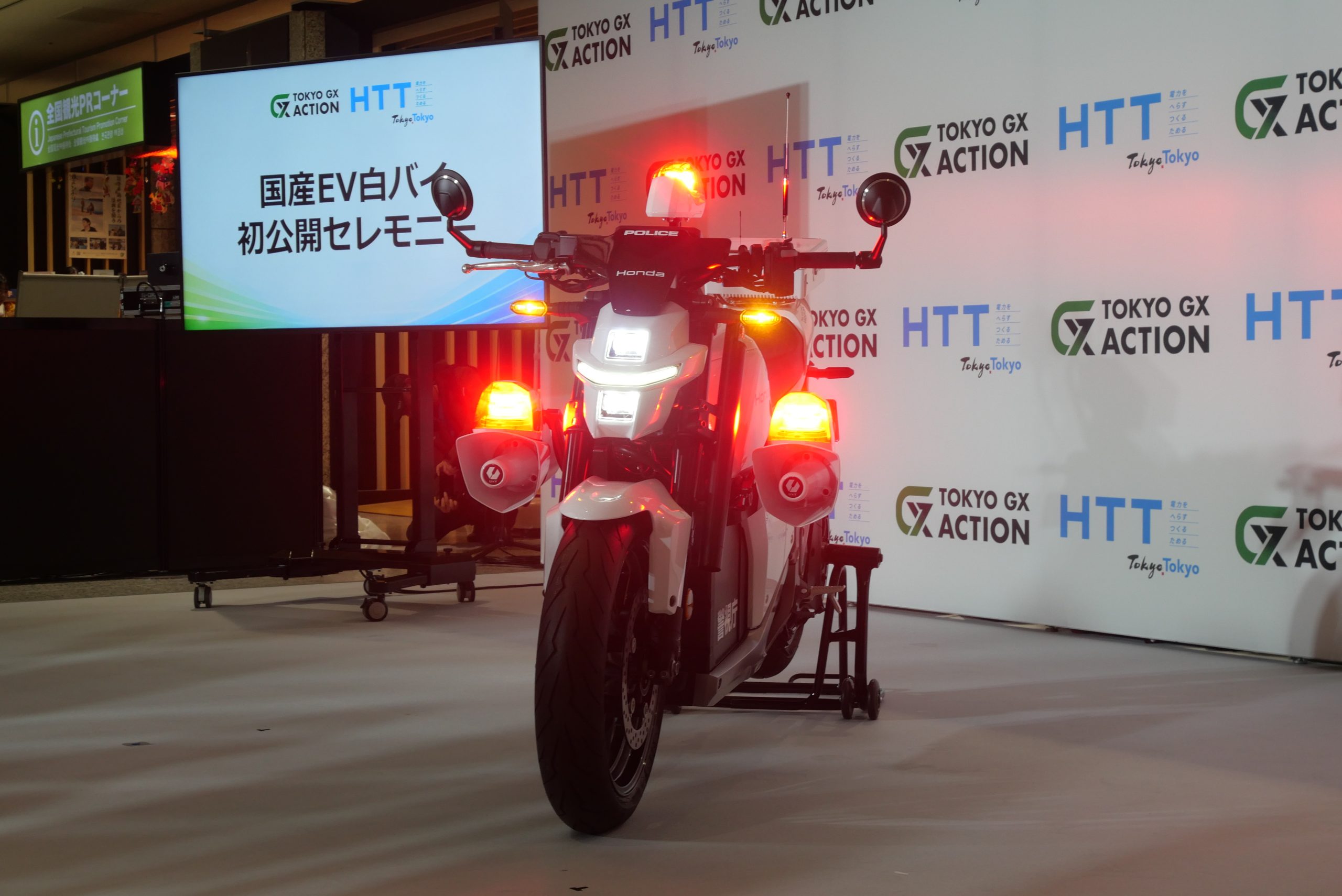 東京都がマラソンや駅伝などの先導車として使用していたEVバイクの白バイは、これまで独BMW製だったが、今回初めて日本メーカー製を採用した。ベース車に赤色灯などを取り付け、白バイ仕様に仕上げた。箱根駅伝終了後の活用は未定という。