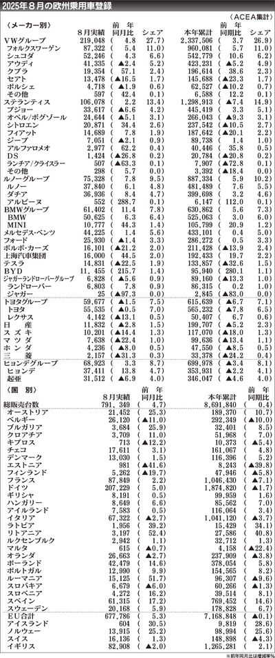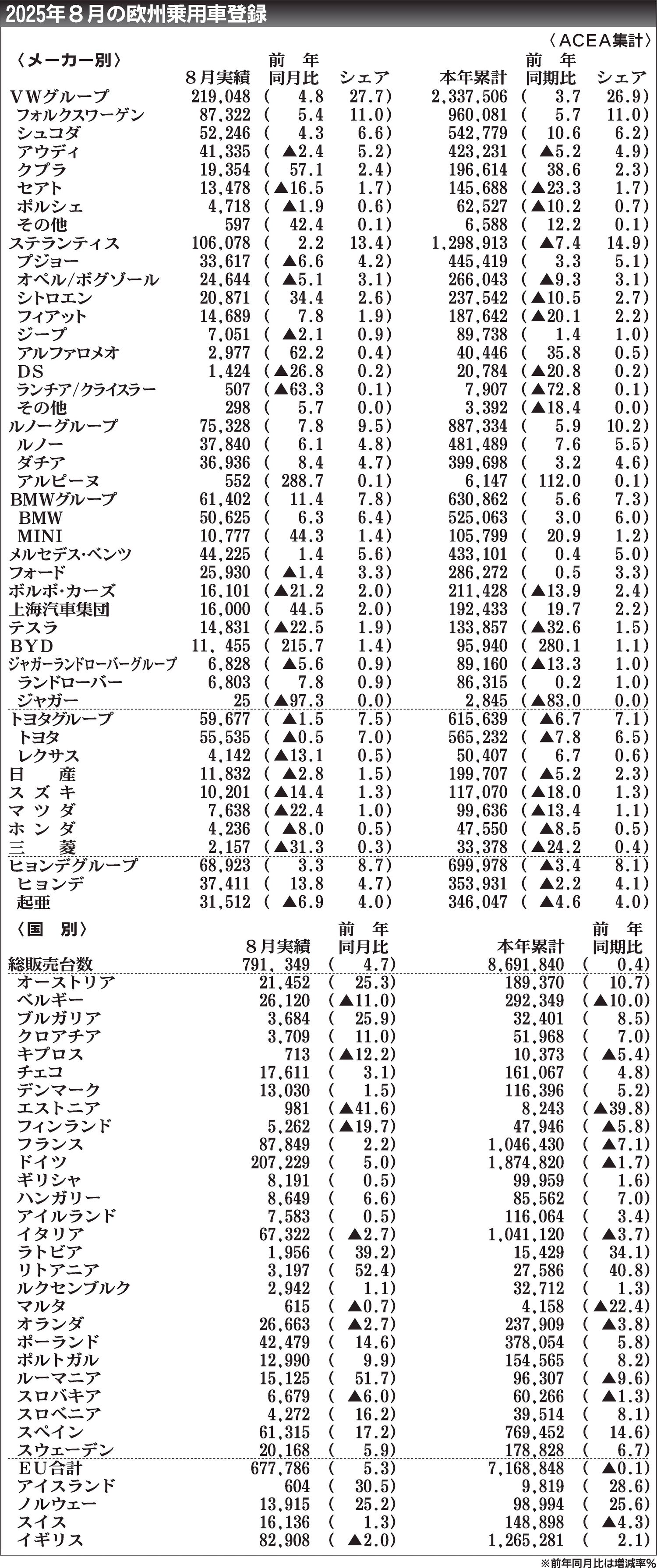 〈2025年4~9月地域別新車販売(含む軽自動車、海外生産車)〉