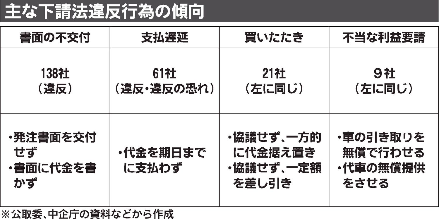 ディーラーの下請法違反、厳しい「買いたたき」も 過去の商習慣は通用せず