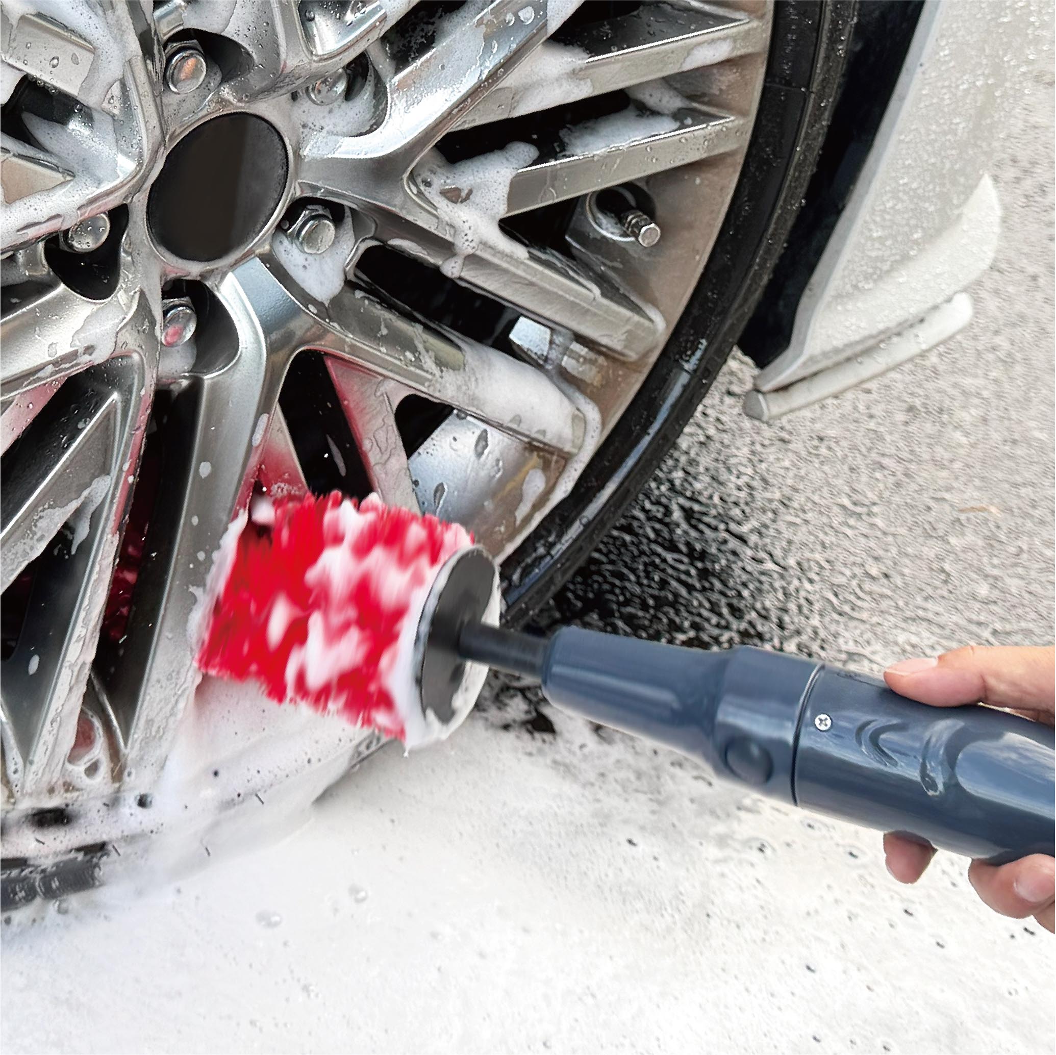 一方のMR.WashBOSS(ミスターウォッシュボス)ブースでは、同社が立ち上げた洗車用品ブランドMR.WashBOSSの製品第一弾である「電動ホイールブラシ」を紹介。実演コーナーも設置し実際に洗浄できるデモンストレーションが行われ、製品の性能を直接実感することができる。同製品は充電式コードレスタイプで屋外洗車場でも手軽に使え、回転ブラシによって手への負担を大幅に軽減することができる。ホイールを傷つけにくい軟質素材の毛を長毛と短毛で組み合わせた「段差ダブル構造ブラシ」がしっかり汚れを落とし、約4~6本のホイールをスピーディーに洗浄可能。さらに2段階の回転速度、水ハネしにくい横回転、IPX5相当の防水設計を備え、高負荷時には自動停止する安心機能も搭載。別売りのタイヤハウス専用ブラシと併用すれば、ホイールまわりのトータルケアも可能となっている。