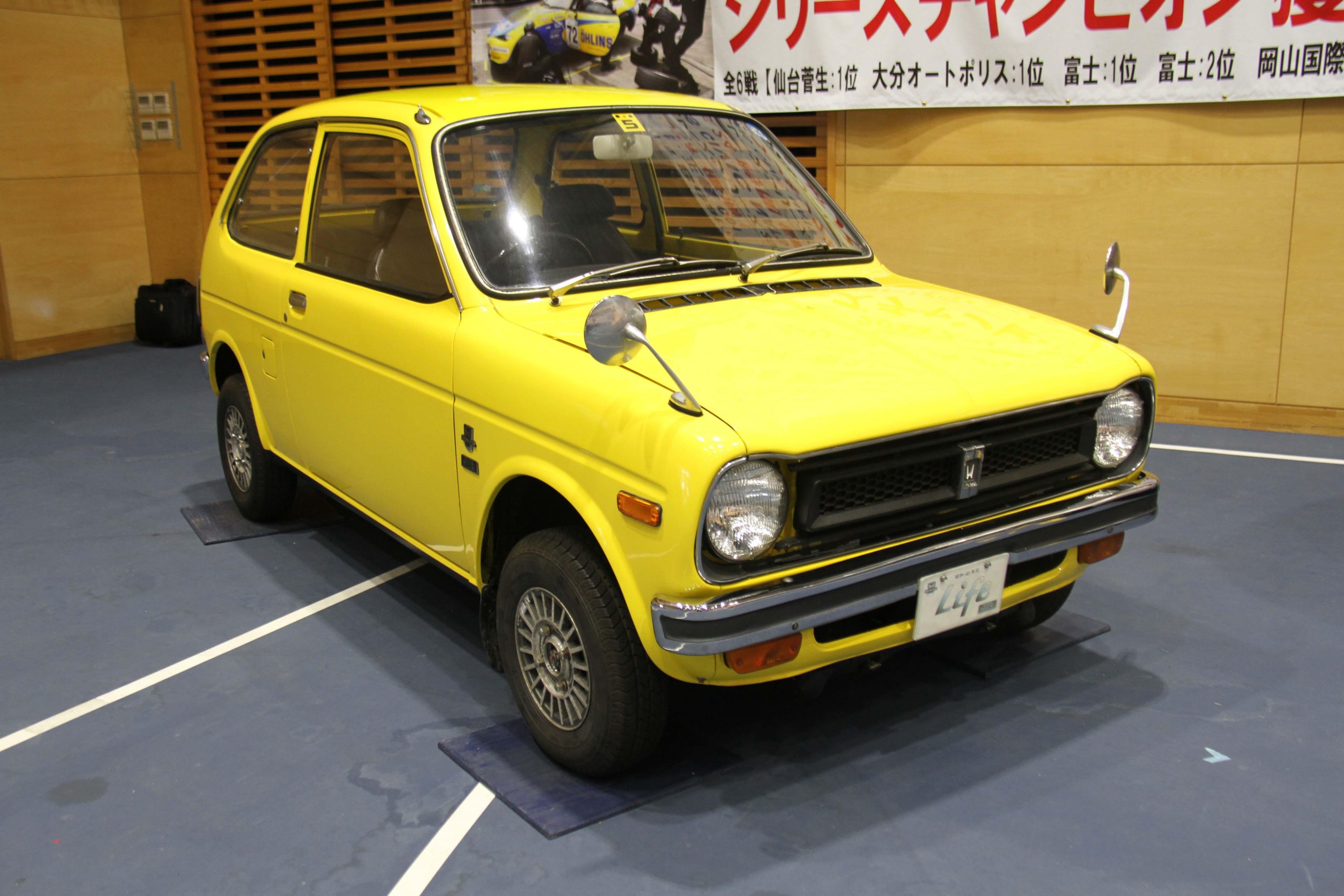 袖ケ浦校車体整備科は、1974年式「HONDA Life」にレストアを施した。身近なファミリーカーとして親しまれた当時のライフの雰囲気を守りつつ、現代でも安心して運転できる丁寧な修復を加え、新車以上の輝きを放つ作品として甦らせた。
