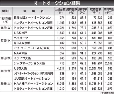 〈オートオークション結果〉 近畿圏 2025/12/15~20