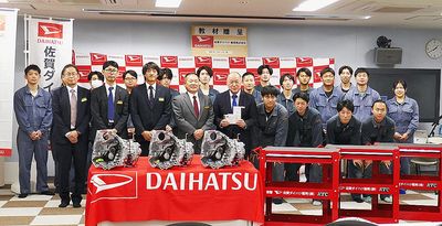 【佐賀】佐賀ダイハツ(鈴木透社長)は、ダイハツ工業とともに、佐賀県立産業技術学院(笠原幸雄学院長)に実習用教材として、「ハイゼットトラック用マニュアルトランスミッションASSY(アッセンブリー)3基」を贈呈した。佐賀県多久市の同学院で開い...