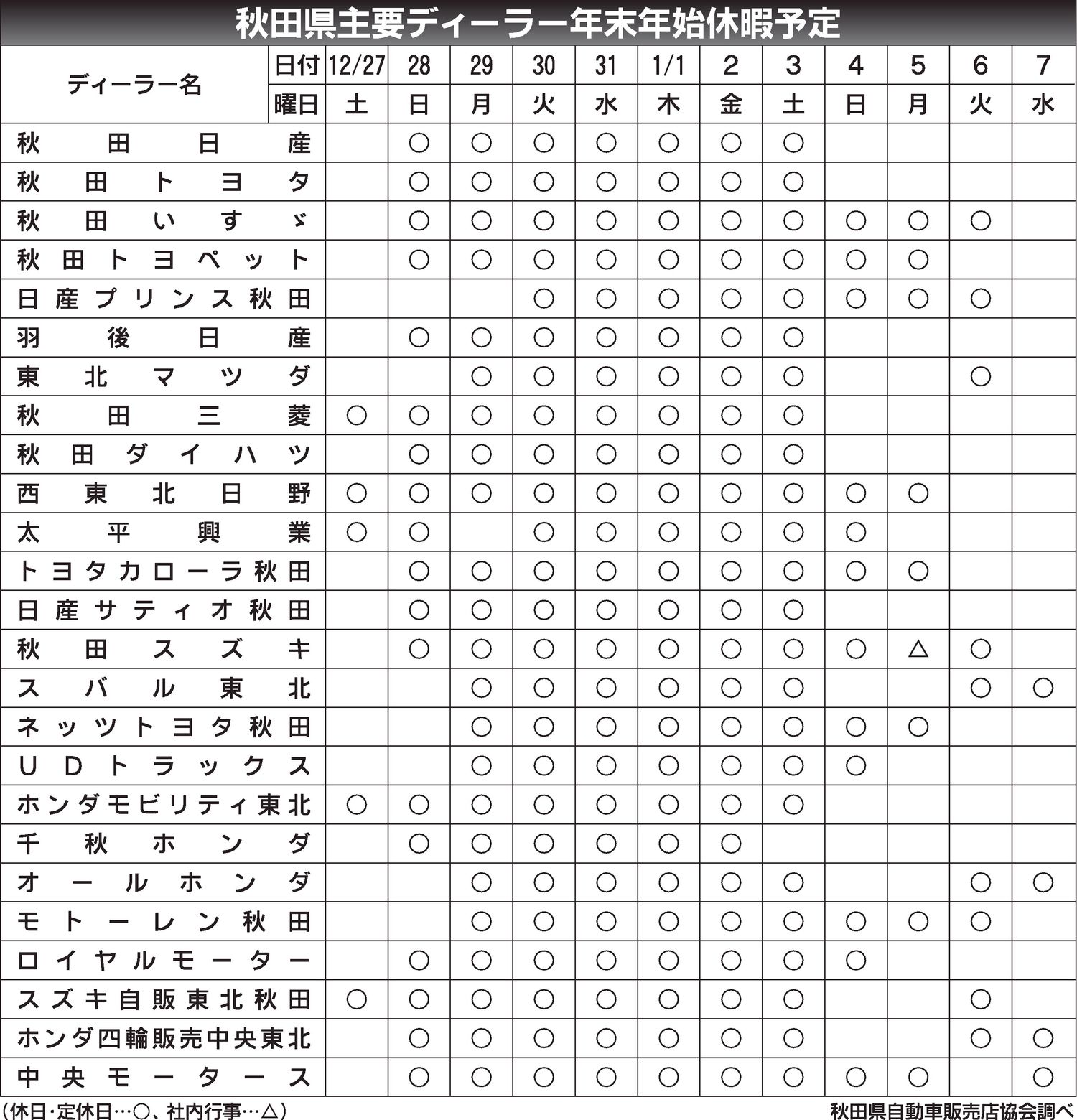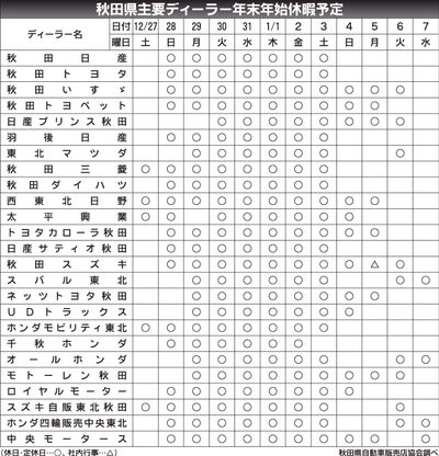 〈秋田県ディーラー年末年始休暇予定〉2025/12/26~2026/1/7
