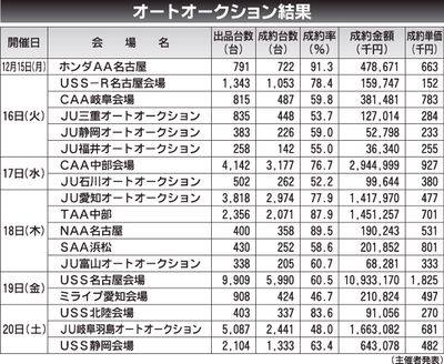 〈オートオークション結果〉中部地区 2025/12/15~20