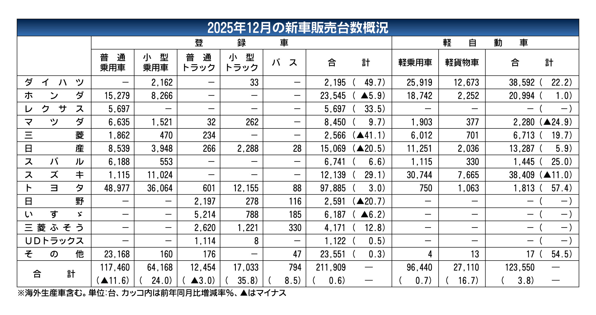 〈2025年11月の新車販売台数概況〉