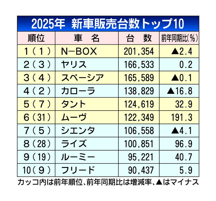 2025年11月の新車販売ランキング、「N-BOX」が首位奪還 暦年の4連覇も確実に