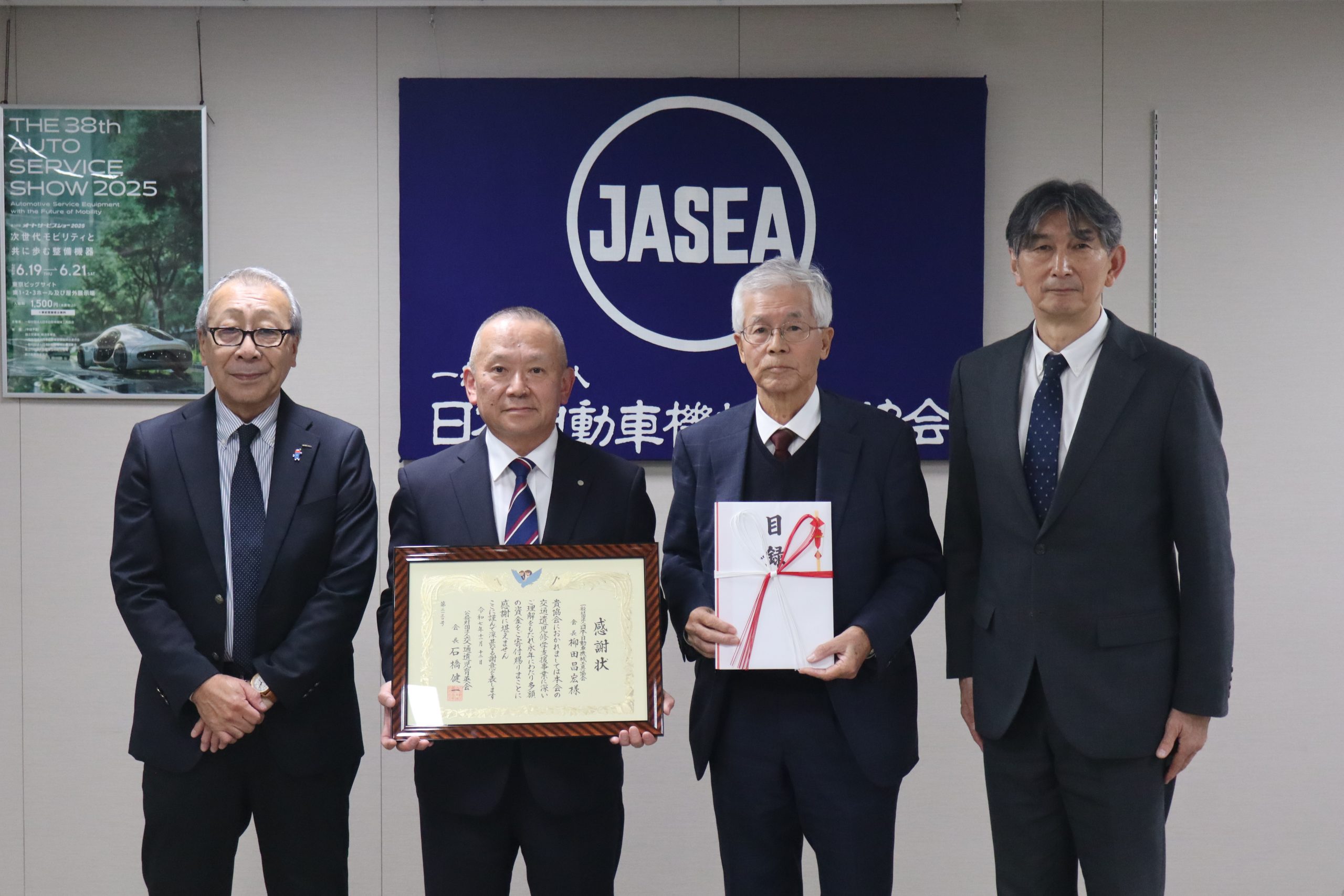 日本自動車機械工具協会(機工協、柳田昌宏会長)は、2025年6月に開催した「第38回オートサービスショー2025」の収益から、交通遺児育英会(石橋健一会長)と交通遺児等育成基金(小幡政人会長)に100万円ずつ寄付した。東京都新宿区の機工協で...