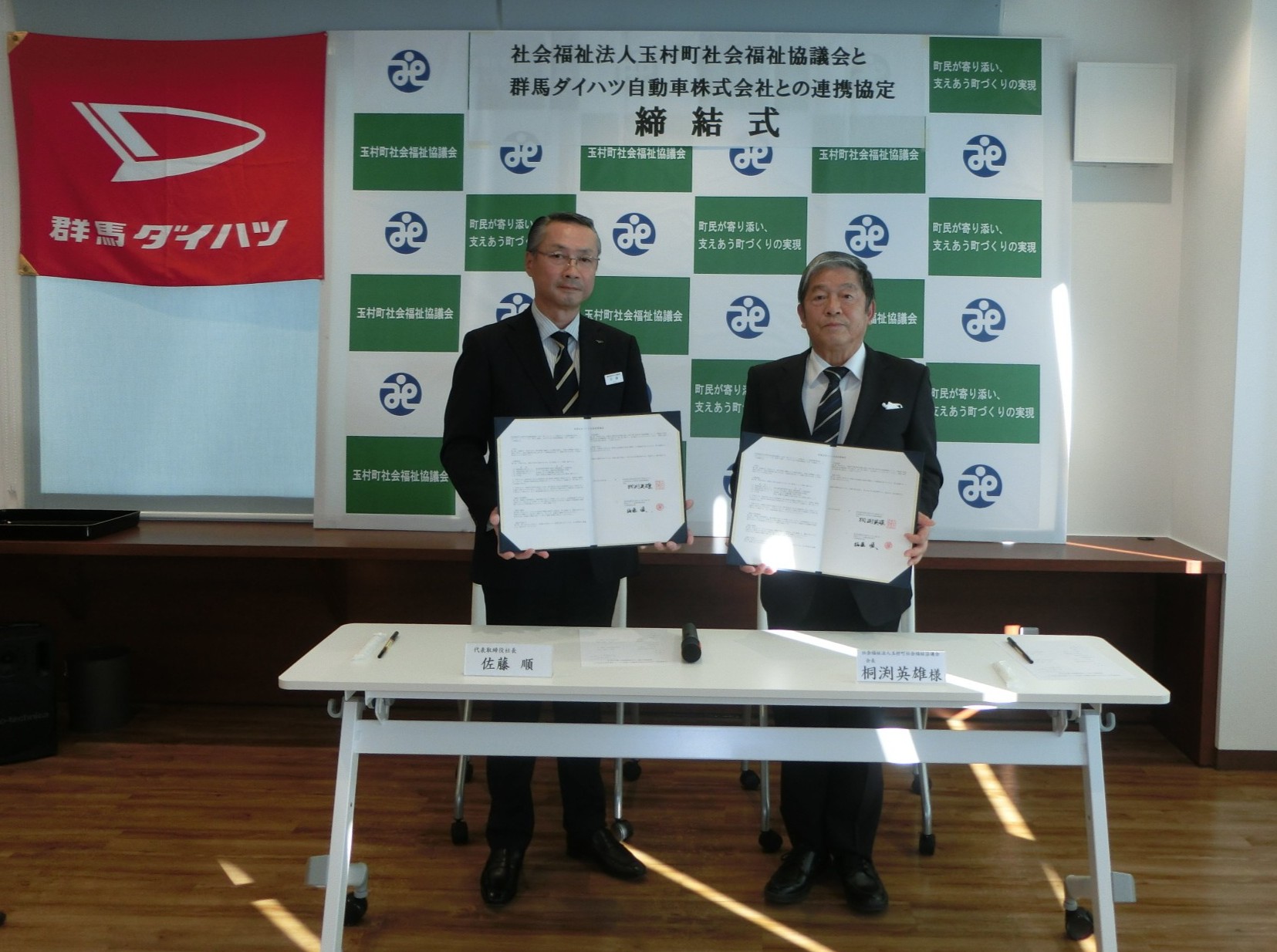 【前橋】群馬ダイハツ(佐藤順社長)は、前橋市の本社併設の前橋西店ショールーム内ギャラリーで、玉村町社会福祉協議会(桐渕英雄会長)と「地域福祉に関する包括連携協定」調印式を執り行った。協定締結により、地域の福祉・活性化・災害などに関することの...