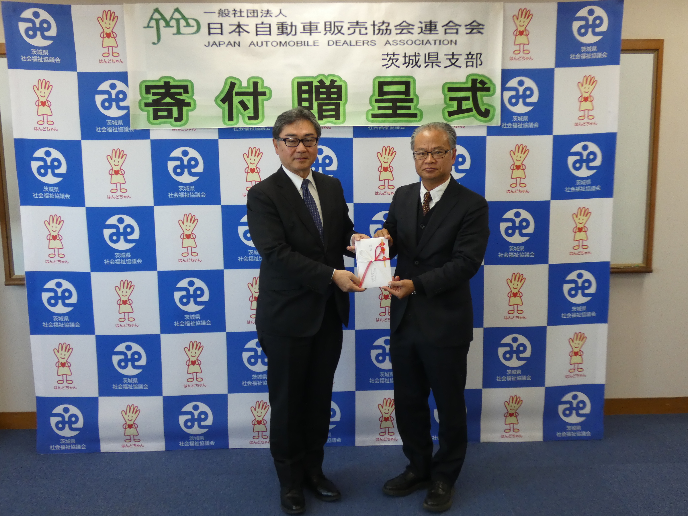 【水戸】日本自動車販売協会連合会(自販連)茨城県支部(加藤敏彦支部長)は、茨城県社会福祉協議会(竹之内章代会長)を通じて交通遺児福祉基金に100万円を寄付した。贈呈式を水戸市のセキショウ・ウェルビーング福祉会館で開催した。式の冒頭、加藤支部...