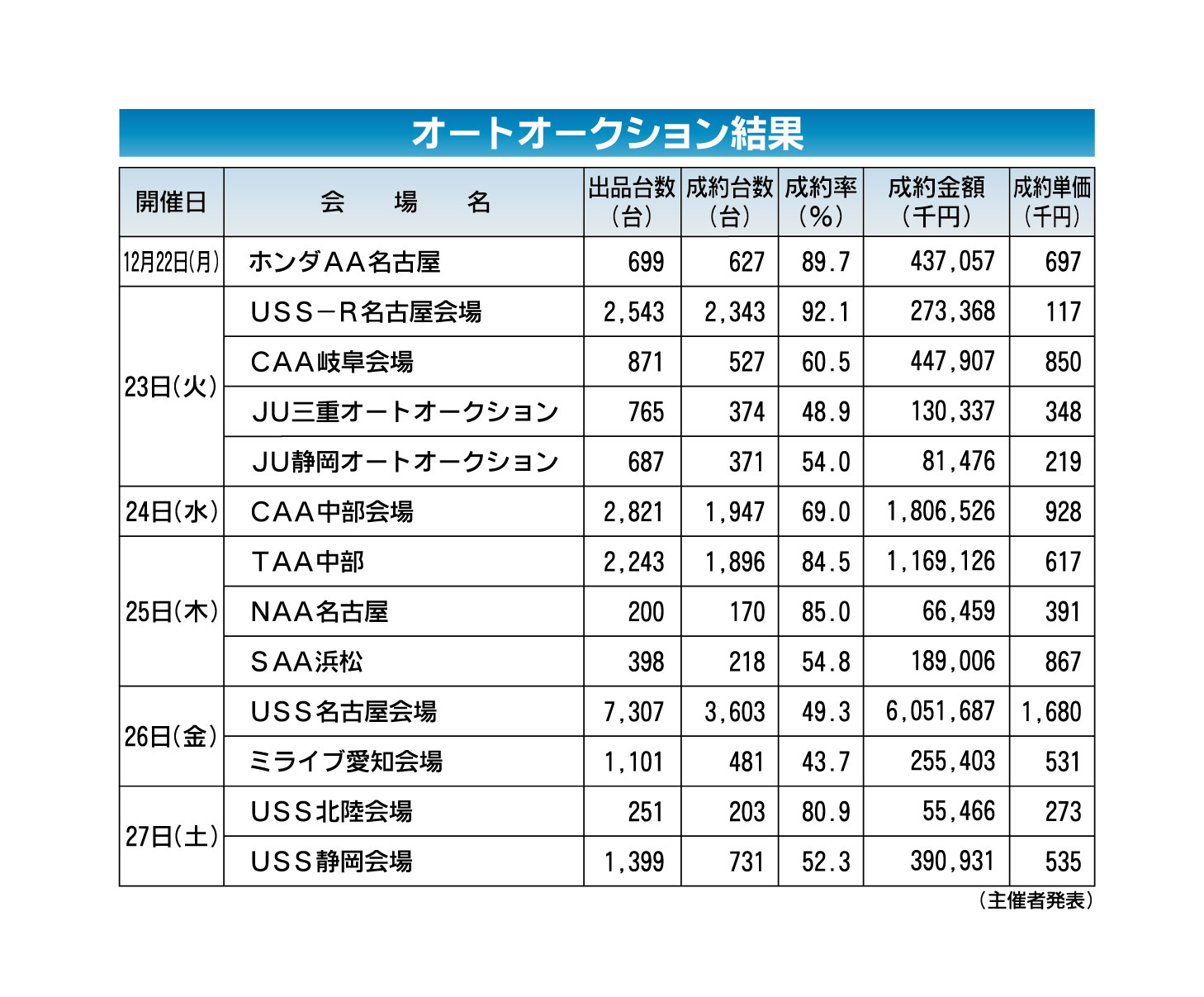 〈オートオークション結果〉中部圏 2025/12/22~27