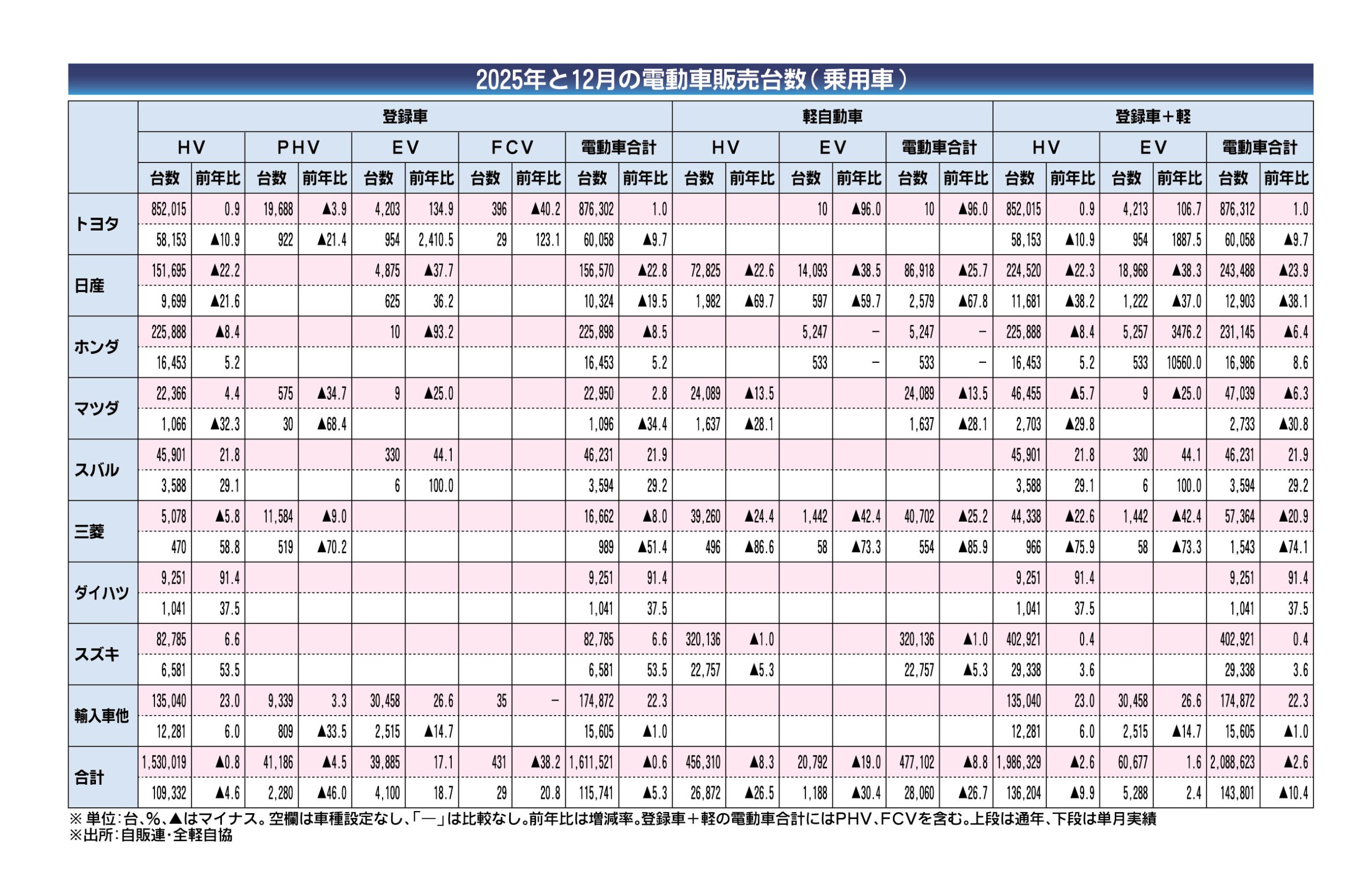〈2025年と12月の電動車販売台数(乗用車)〉