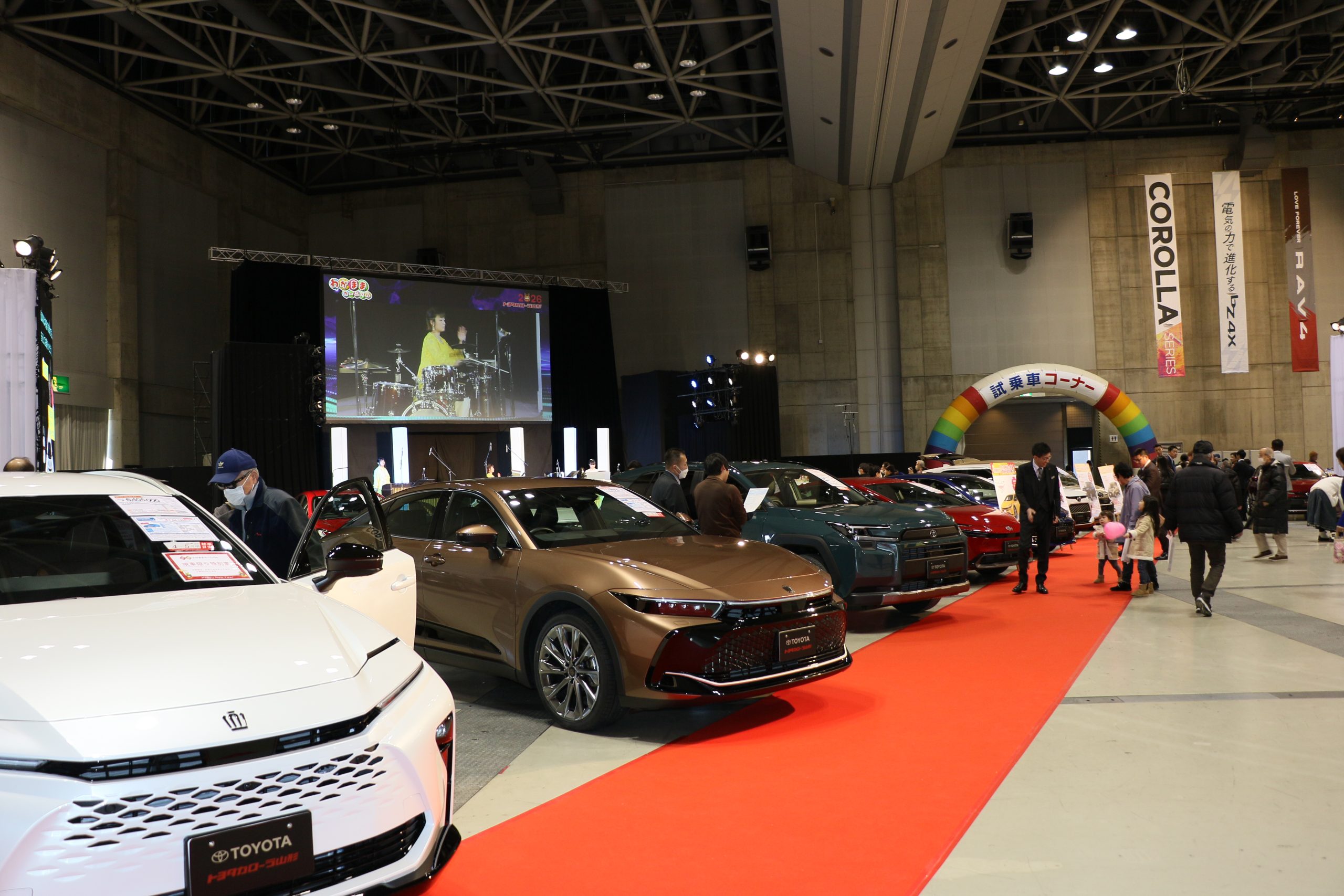 【山形】トヨタカローラ山形(鈴木肇子社長、山形市)は1月10~12日、山形ビッグウイング(山形市)で「新春わがままカーニバル」を開催した。10店舗合同イベントで、屋内に新型「RAV4」「bZ4X」など新車37台、屋外に中古車141台を展示し...