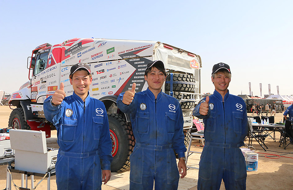 今年は西東北日野、南関東日野、広島日野のメカニックがチームに加わり、現地で整備にあたった。南関東日野の今川博貴さんは「ゴールが近くなるにつれて徹夜作業が増え、『これがダカールか』という感じだった。大変だったからこそ達成感も大きい」と話した。西東北日野の田澤正和さんは「ダカール選抜メカニックへの道を他のメカニックにつなげていきたい」とした。