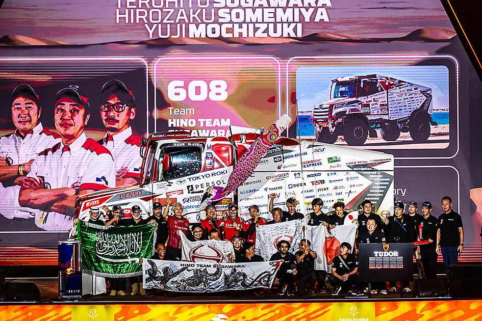 日野自動車は1月18日、サウジアラビアで開かれた「ダカール・ラリー2026」に出場し、トラッククラス総合15位で完走したと発表した。1991年の初参戦からの連続完走記録を35に伸ばした。参戦チーム「日野チームスガワラ」の菅原照仁代表も通算21回目の完走を果たし、同じく日野のトラックを駆った父・義正氏の記録を更新した。