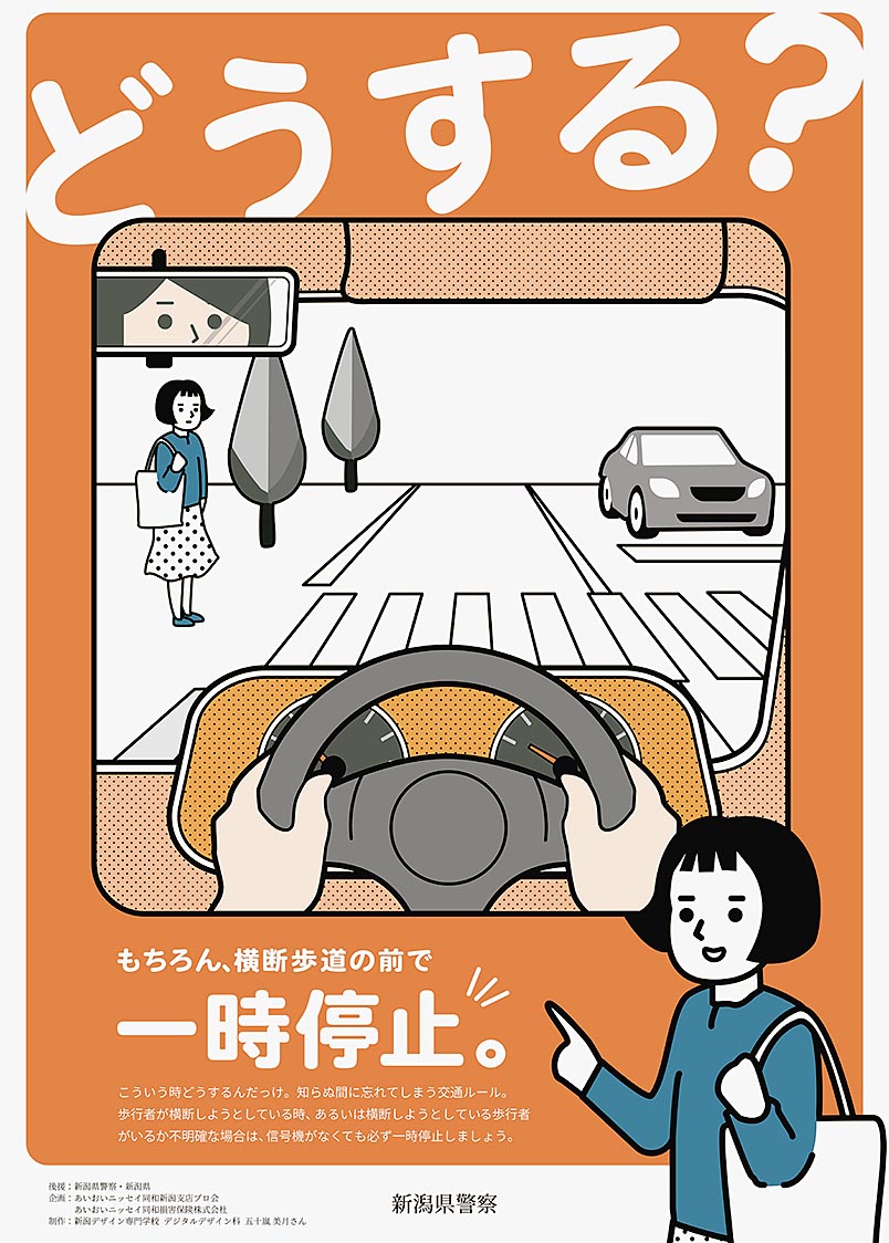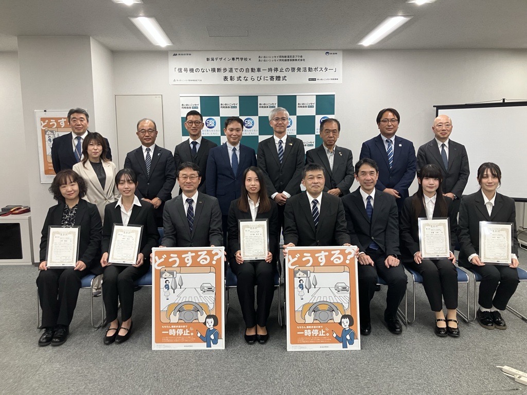 【新潟】あいおいニッセイ同和損害保険とあいおいニッセイ同和新潟支店プロ会(稲葉清記会長)は、信号機のない横断歩道での自動車の一時停止を啓発するためのポスターを、新潟県警察と新潟県に寄贈した。新潟デザイン専門学校(新潟市中央区)にポスター制作...
