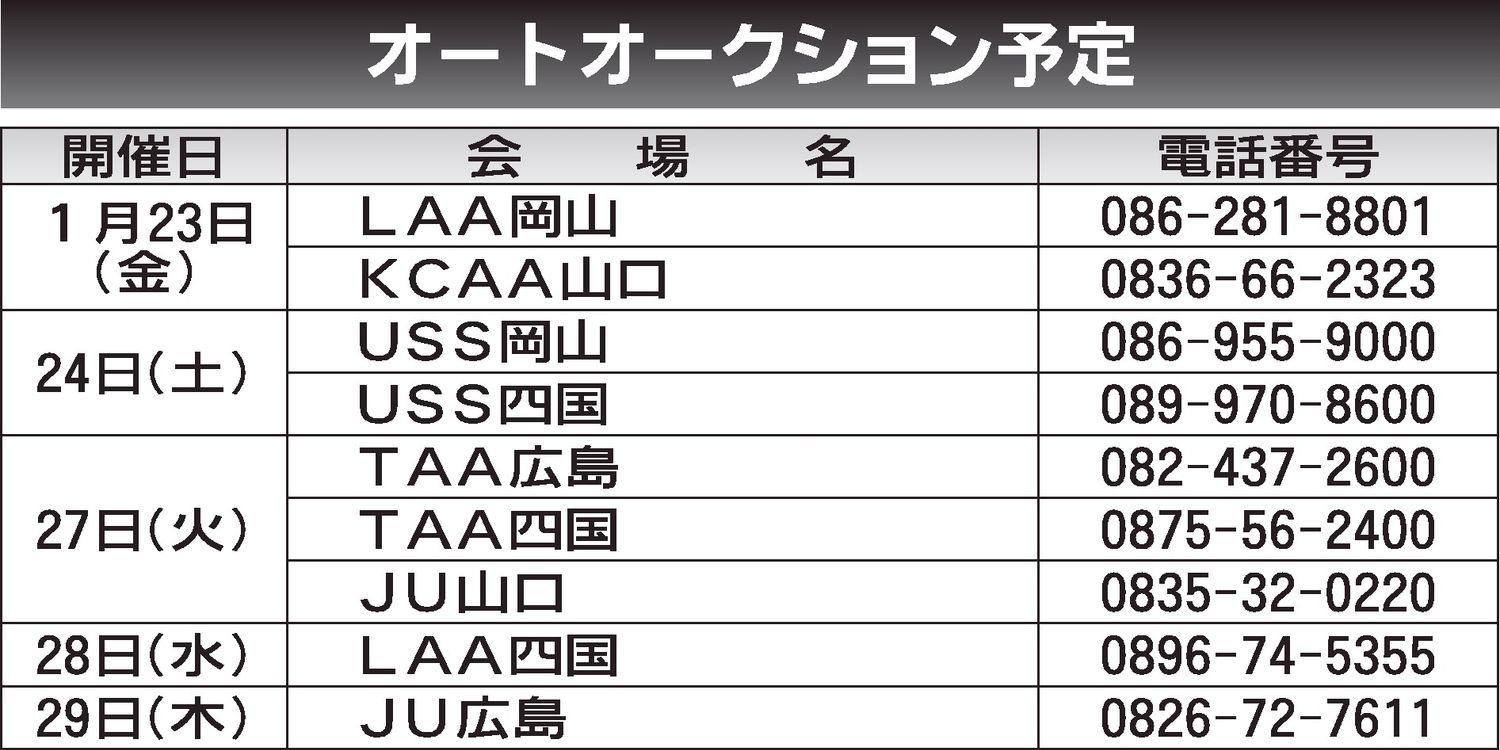 〈オートオークション予定〉中・四国地区 2026/1/23~29