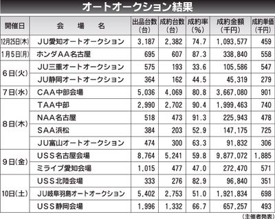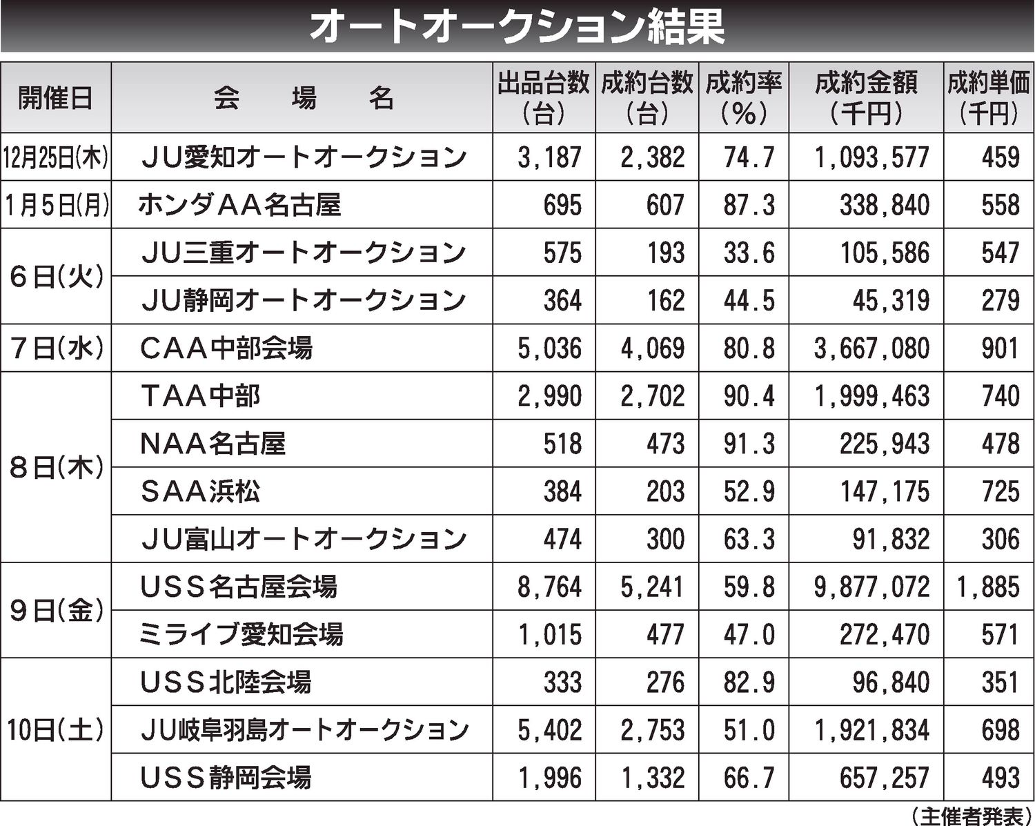 〈オートオークション結果〉中部地区 2025/12/25~2026/1/10