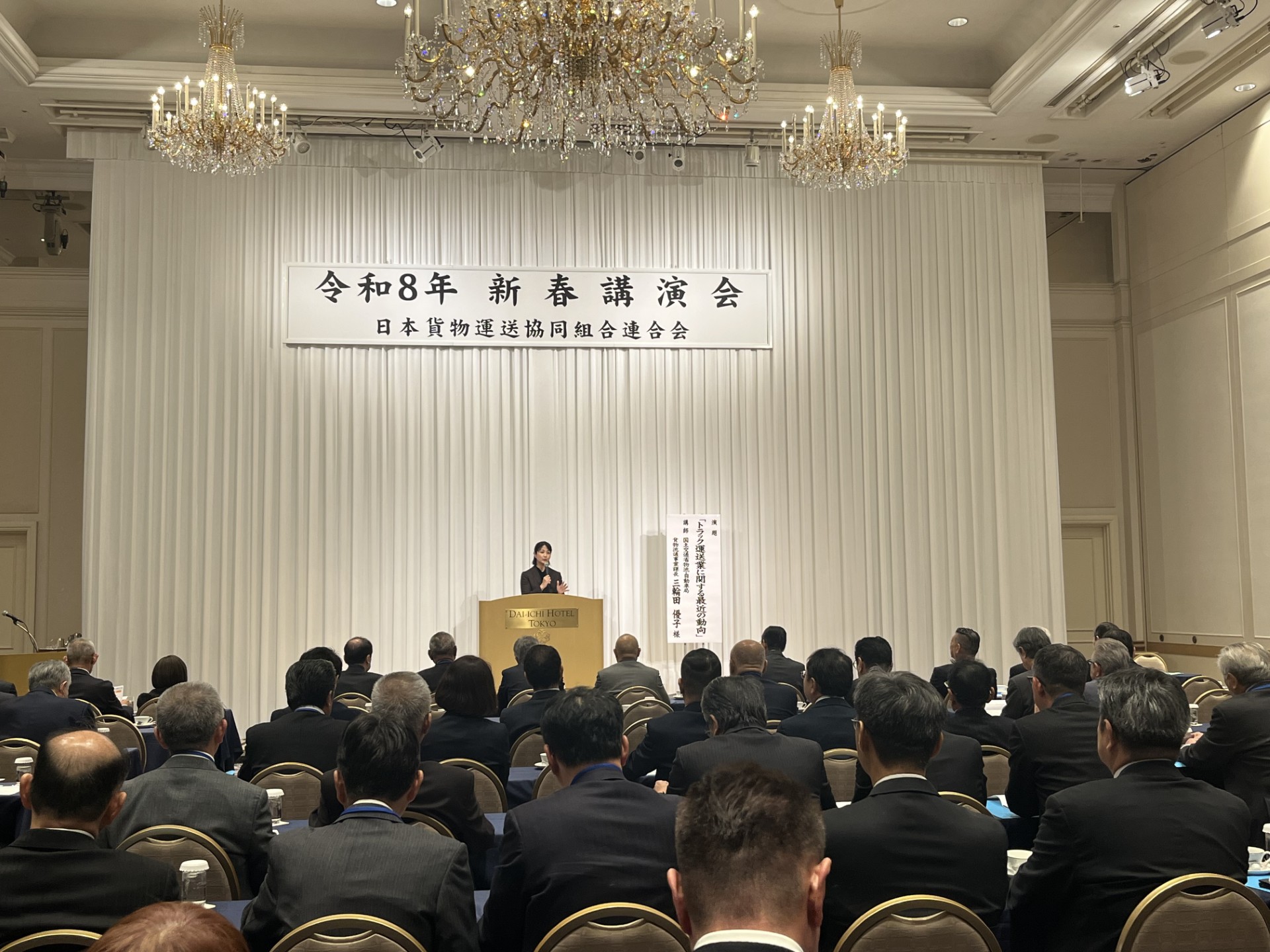 日本貨物運送協同組合連合会(御手洗安会長)は1月19日、新春講演会と賀詞交歓会を都内のホテルで開催した。講演会では国土交通省物流・自動車局貨物流通事業課の三輪田優子課長が、近年のトラック運送業を取り巻く環境などについて解説した。特に、人材確...