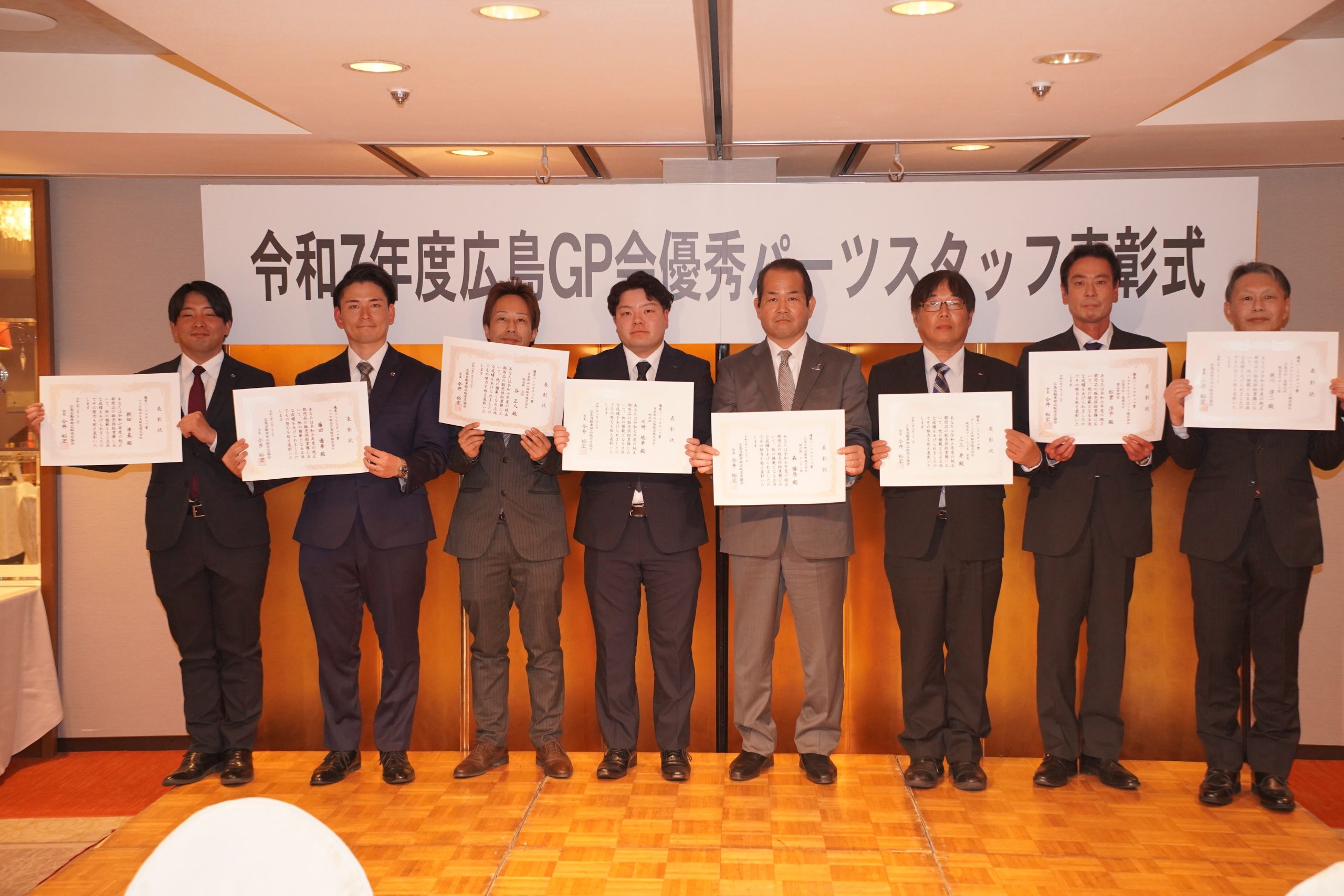 広島県内の純正部品販売会社で組織する広島GP会(今井裕宏会長=トヨタモビリティパーツ広島支社・島根支社支社長、広島県坂町)は、「2025年度広島GP会優秀パーツスタッフ表彰式」を広島市内のホテルで開催した。アフターマーケット分野において、純...