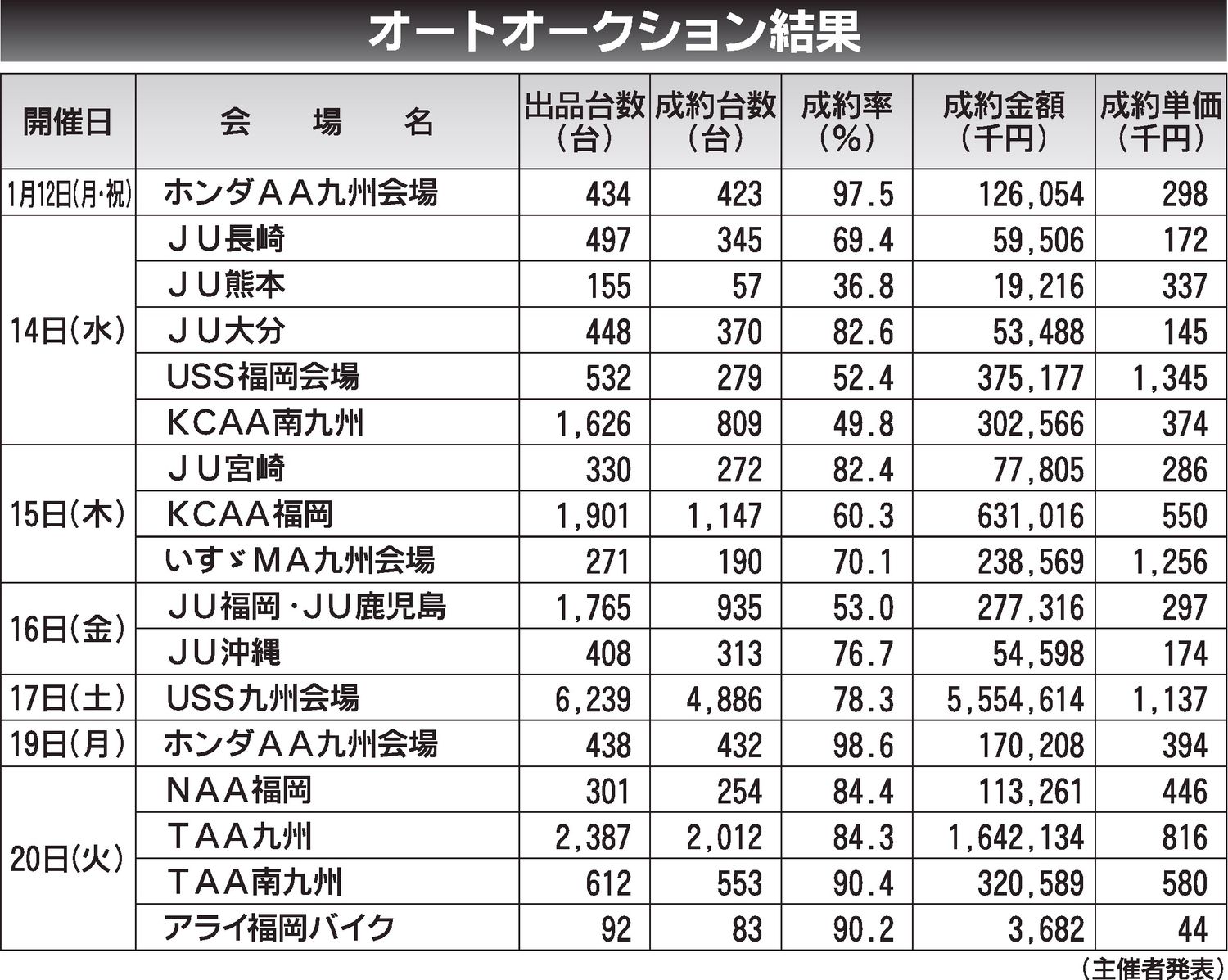 〈オートオークション結果〉九州地区 2026/1/12~20