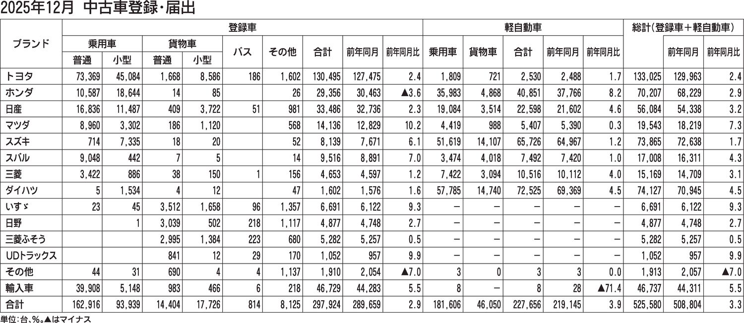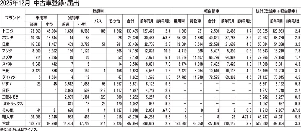 〈2025年12月 中古車登録・届出〉