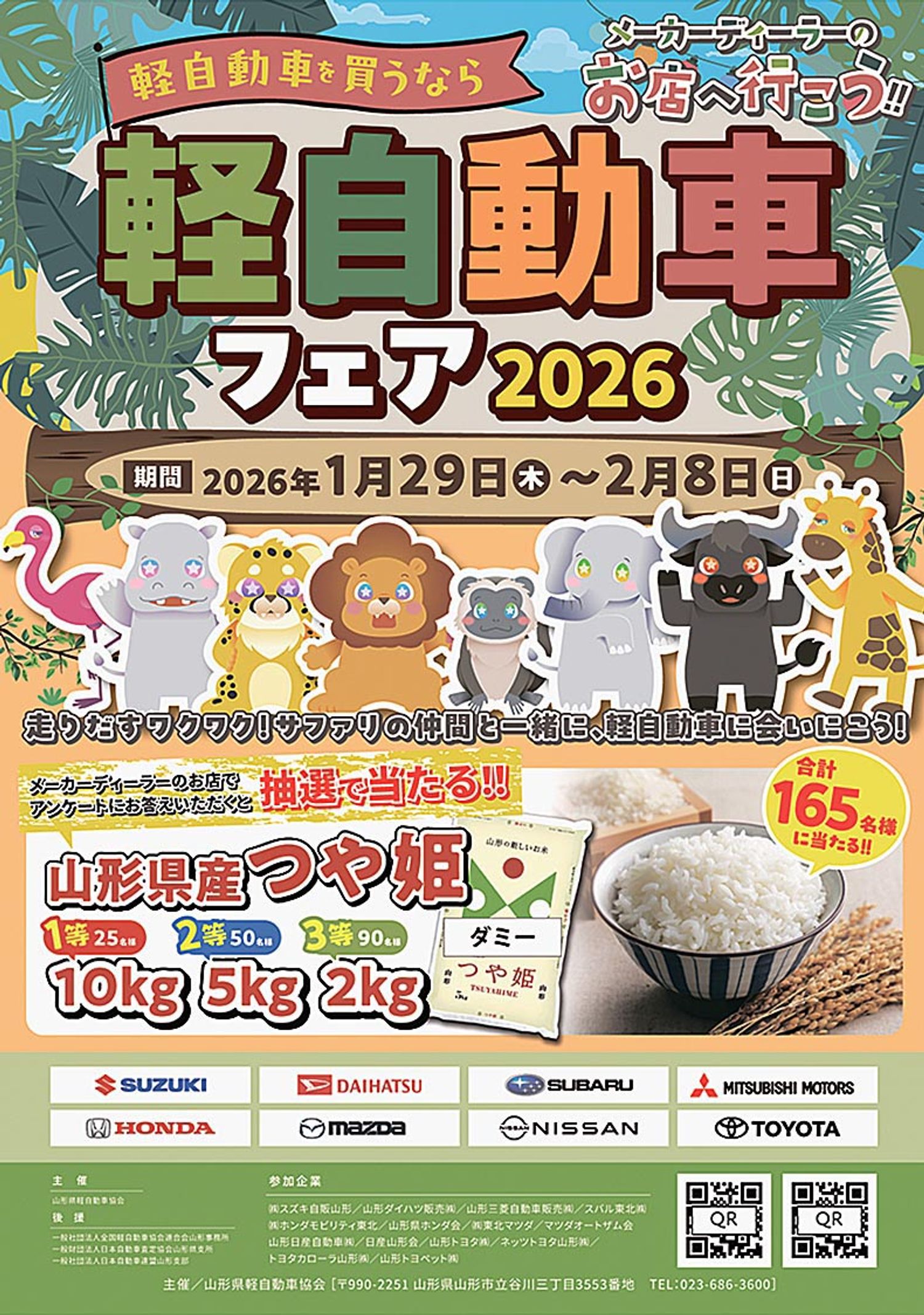 【山形】山形県軽自動車協会(鈴木武浩会長)は1月29~2月8日、特設ウェブサイトを設けて会員ディーラーへの来店促進を図る「軽自動車フェア2026」を開催している。25年に続き2回目で、実会場での合同イベントに代わる新たなキャンペーン企画と...