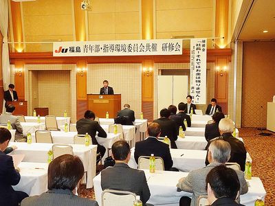 【福島】JU福島(橋本一男理事長)は、福島市内のホテルで指導環境委員会と青年部会共催の「研修会・新年会」を開催した。会員、組合員、来賓ら約75人が出席し、『社長!それではお金は残りません!』の演題によるセミナーを熱心に聴講した。新年会では...