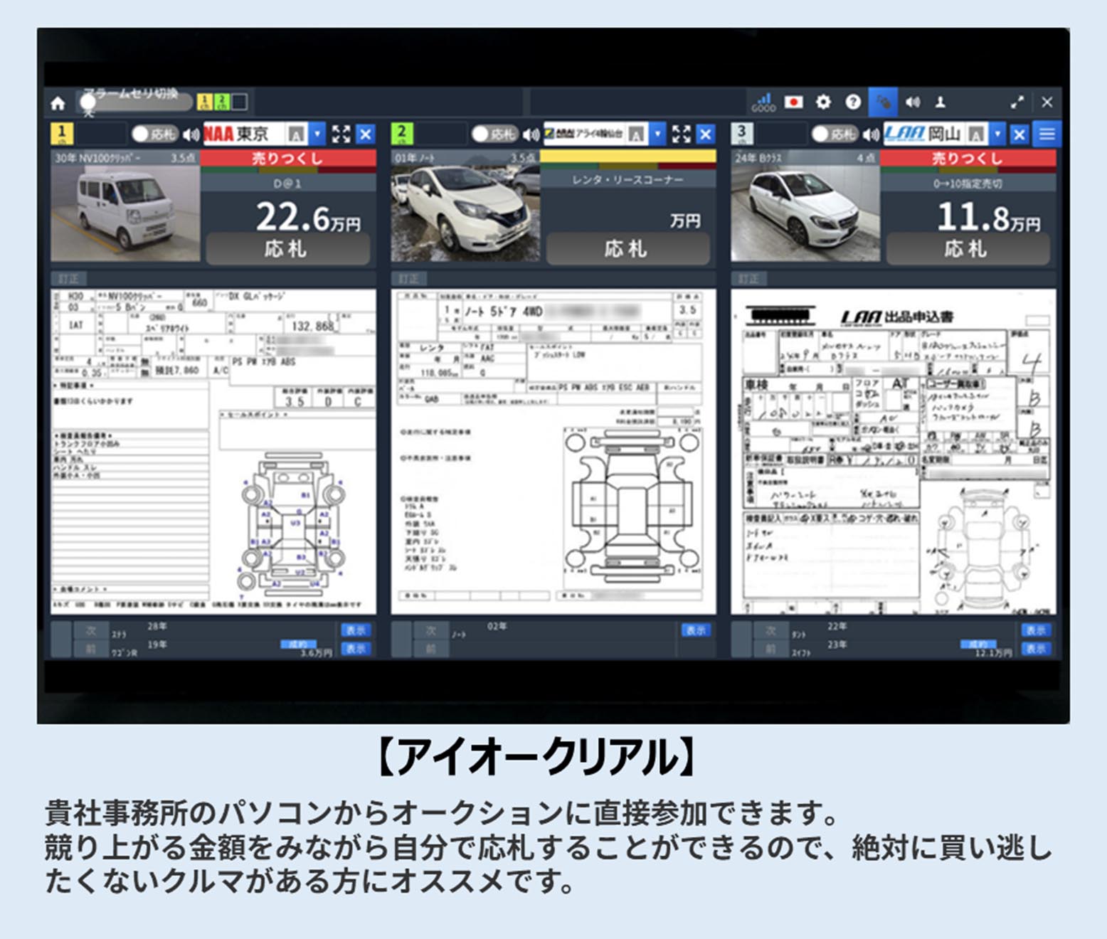 オークネット、オークネットバイク、クイック、いすゞ、TAA-CAA、JU、IAA大阪、アライ、LAP、LAP一発、オークネットVALUE一発、ガリバー一発、ミライブセリ前一発落札(順不同)